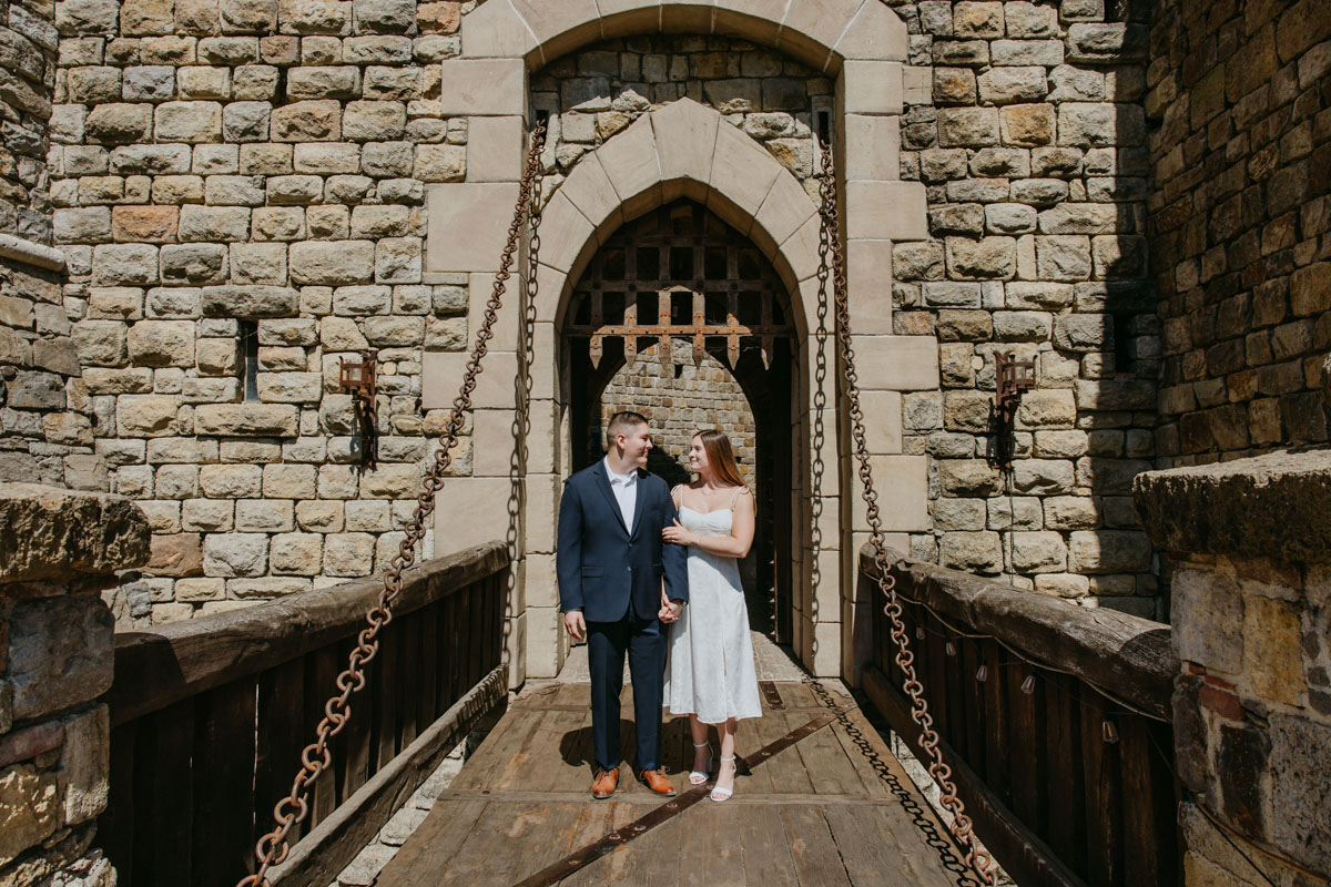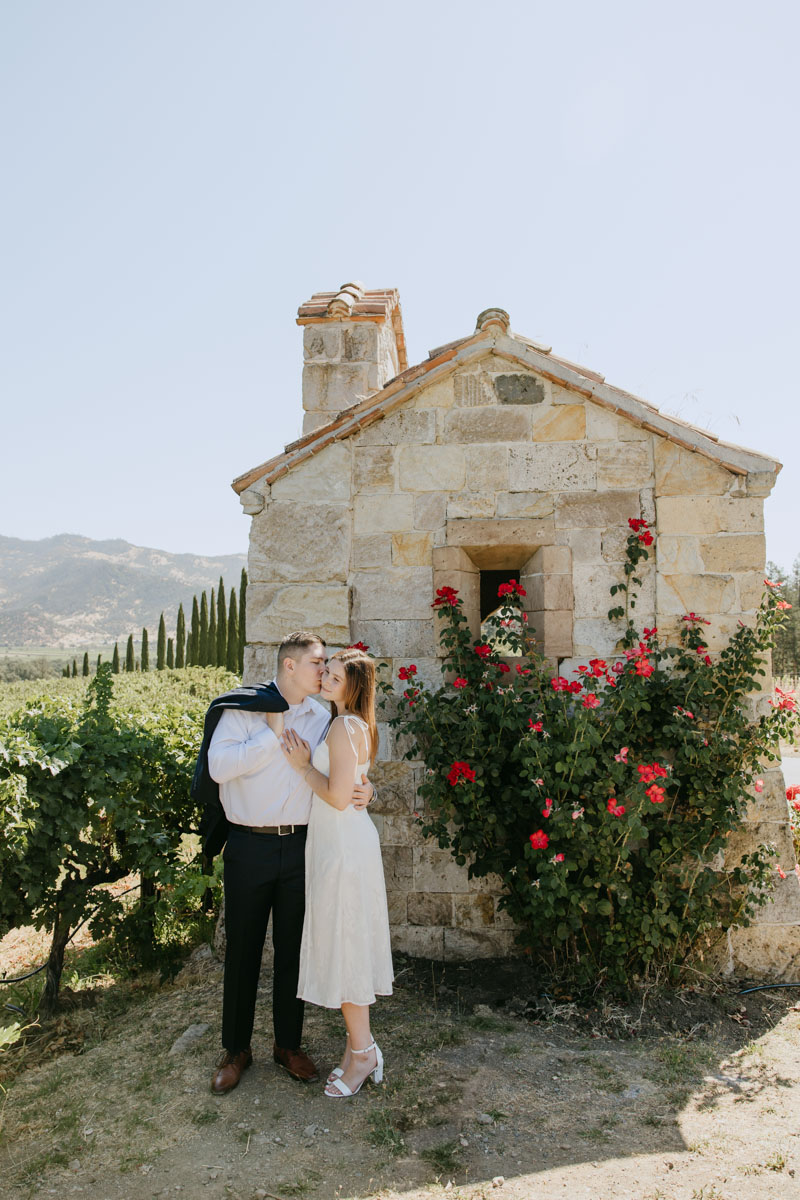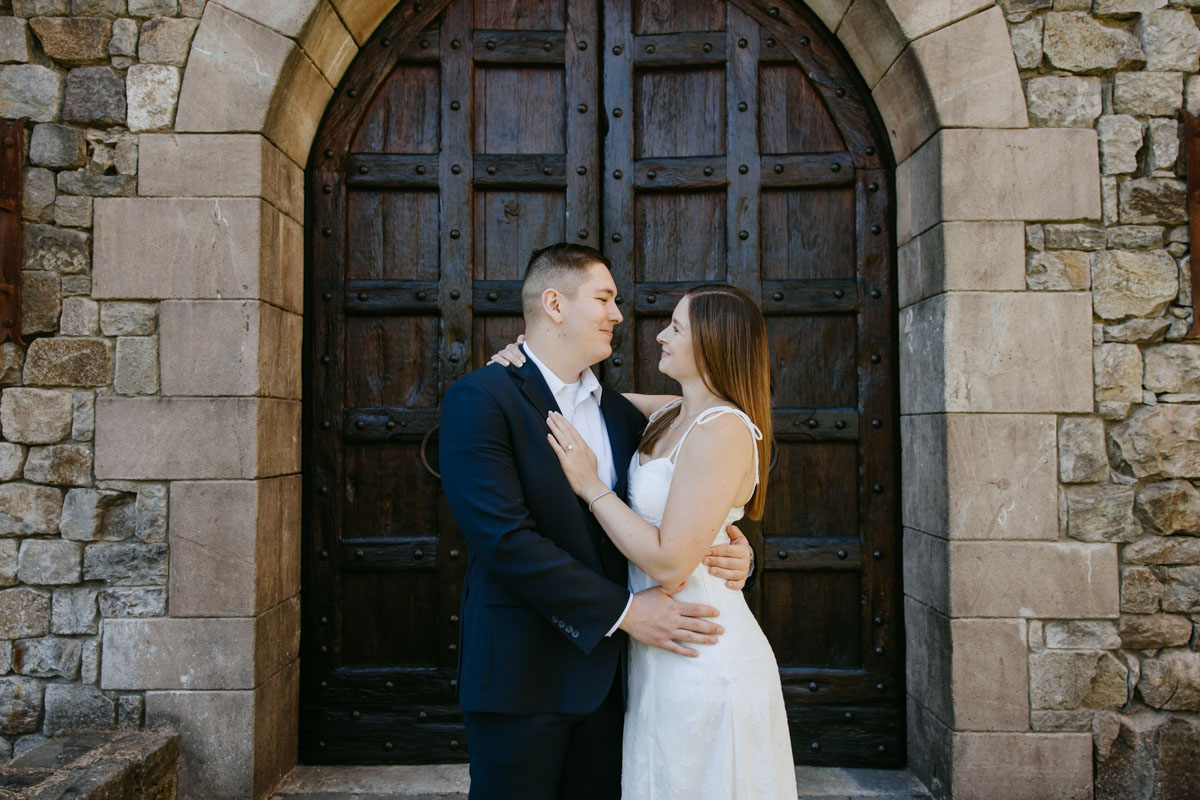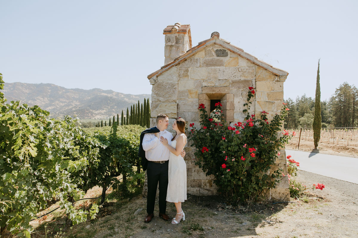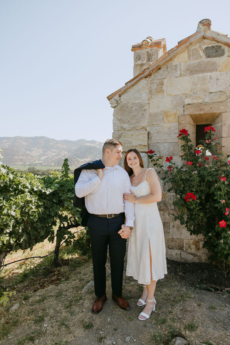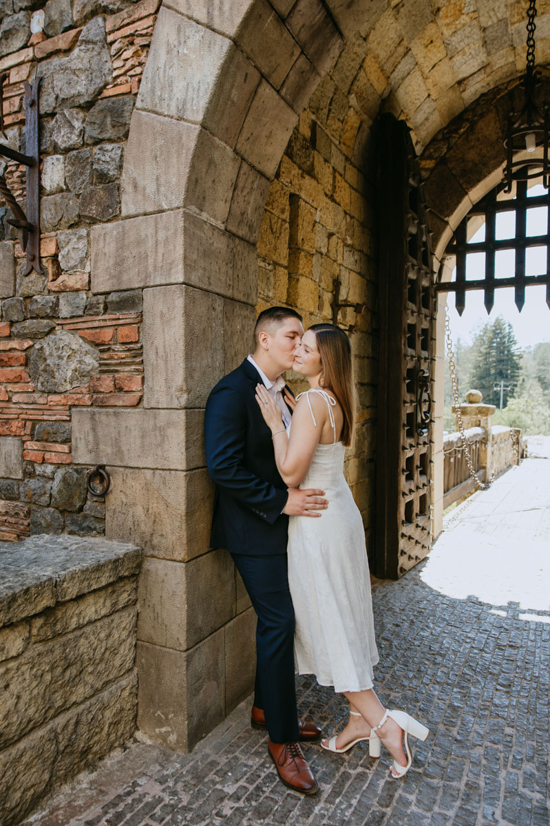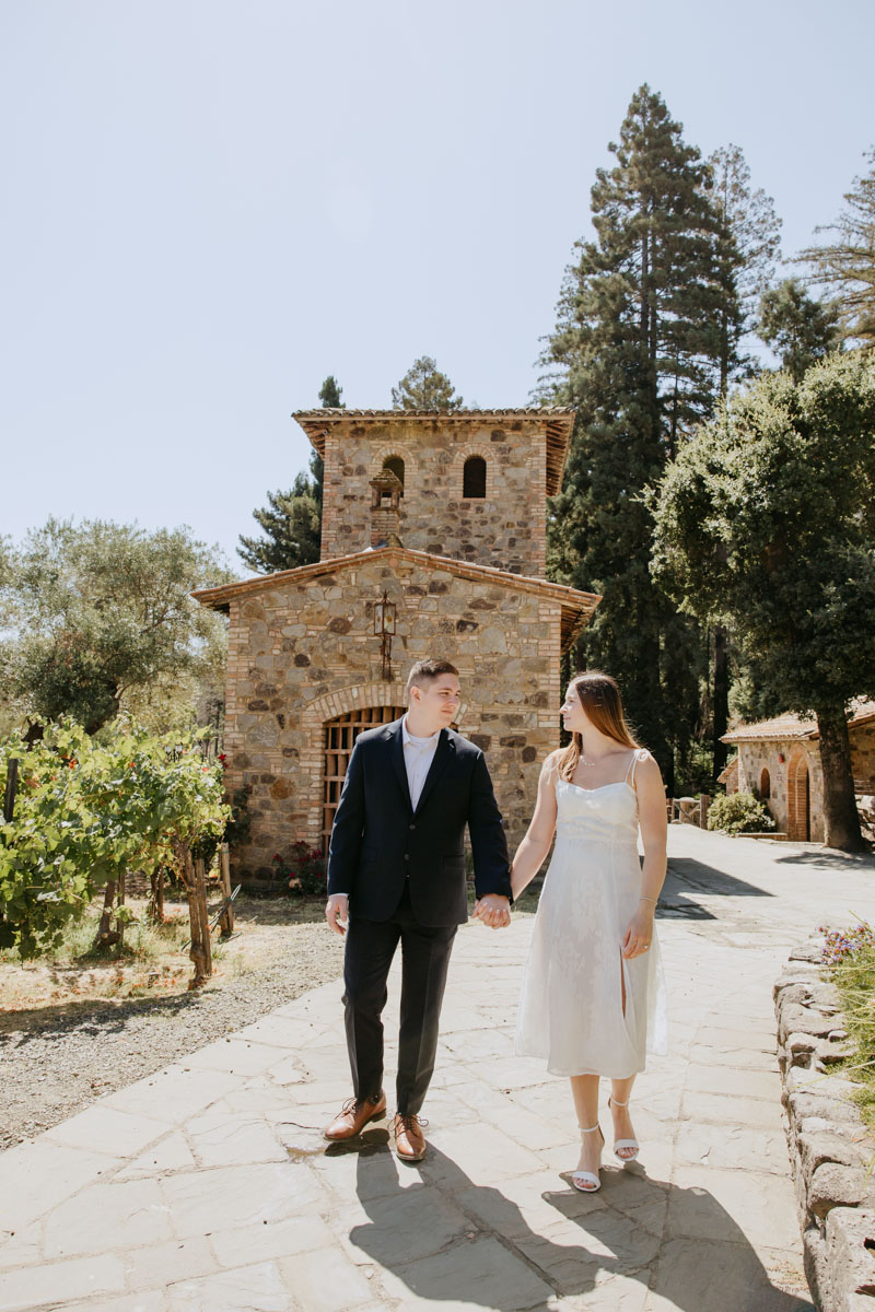 If you’ve ever wanted to take photos at a beautiful medieval castle (followed by some delicious local wines) without leaving California, Castello Di Amorosa in Napa Valley is the perfect spot. Erika and Billy chose this regal setting for their engagement photos, dressed like royalty, and explored the vineyards in the June sun. The vines, the castle towers, doors, and drawbridge, and a little chapel beside the road gave us a variety of backdrops and the vast space ensured that we could enjoy our time away from any crowds despite it being a popular tourist attraction. Best wishes for this darling couple and the fairytale that awaits them!