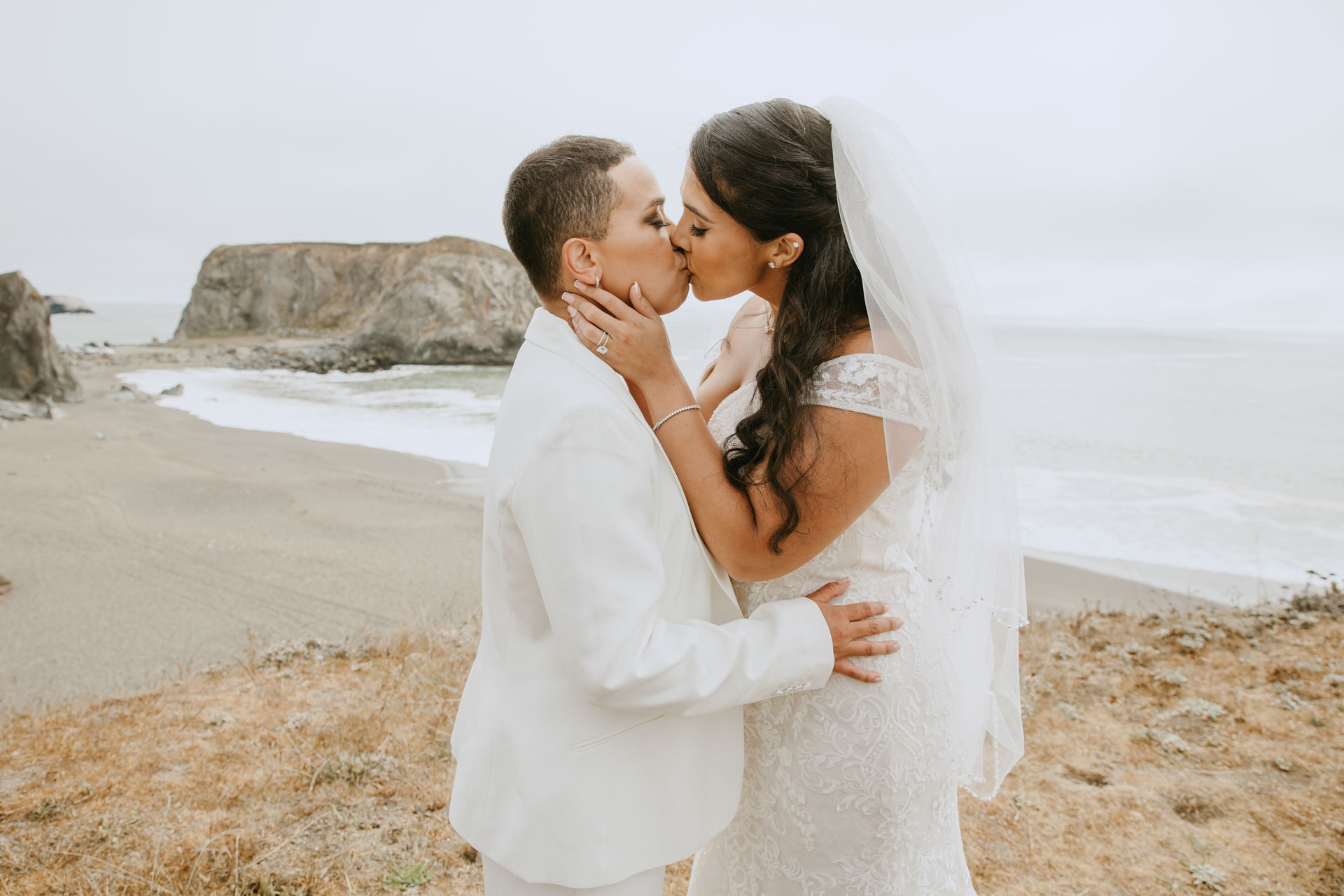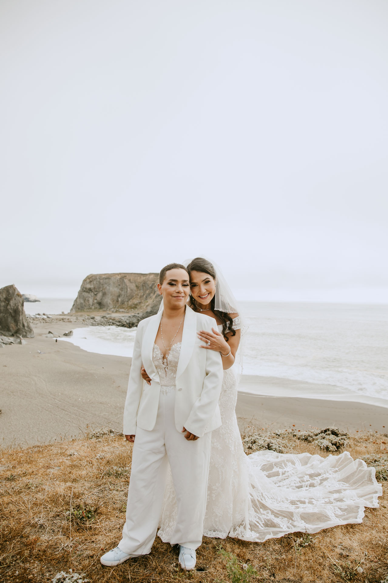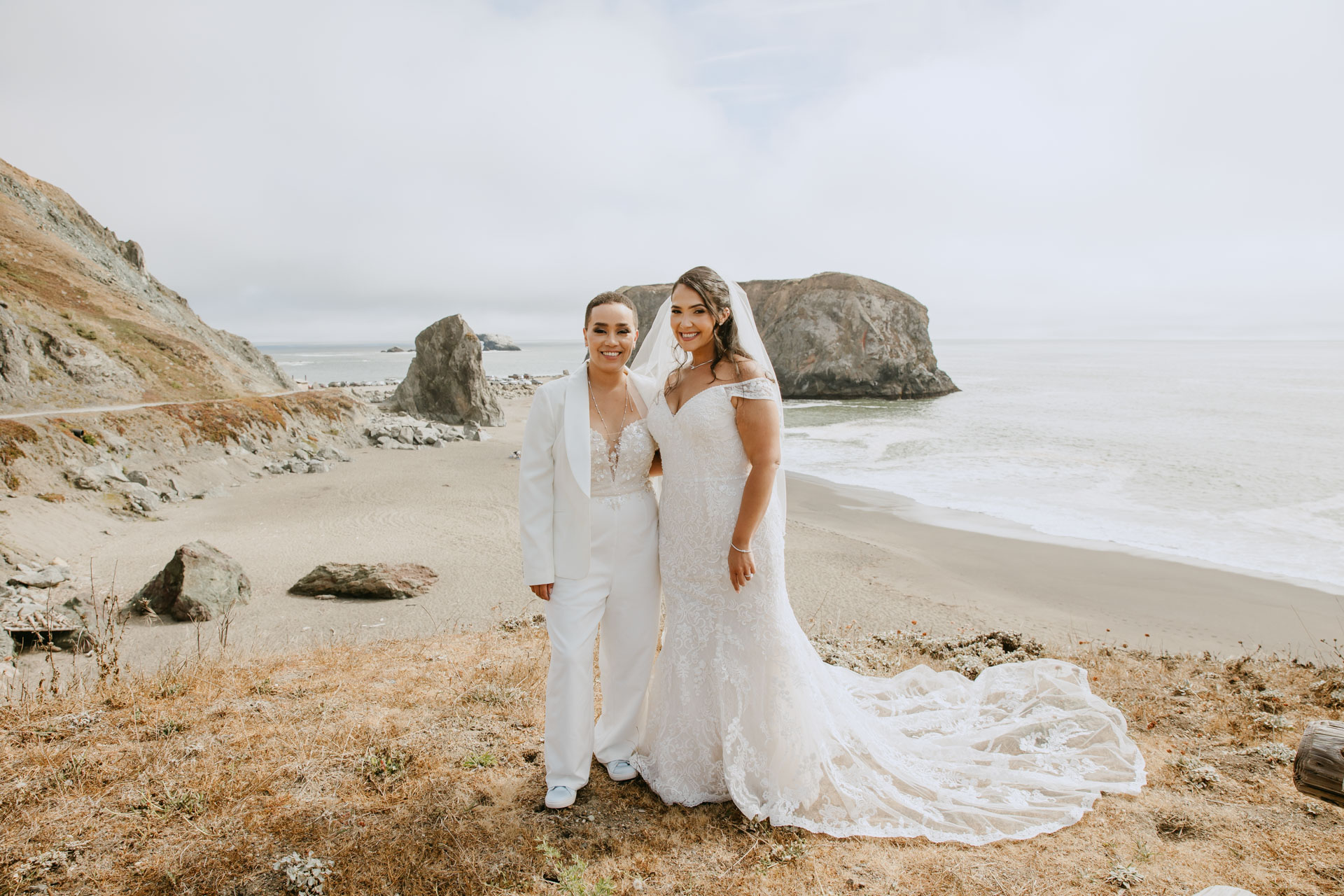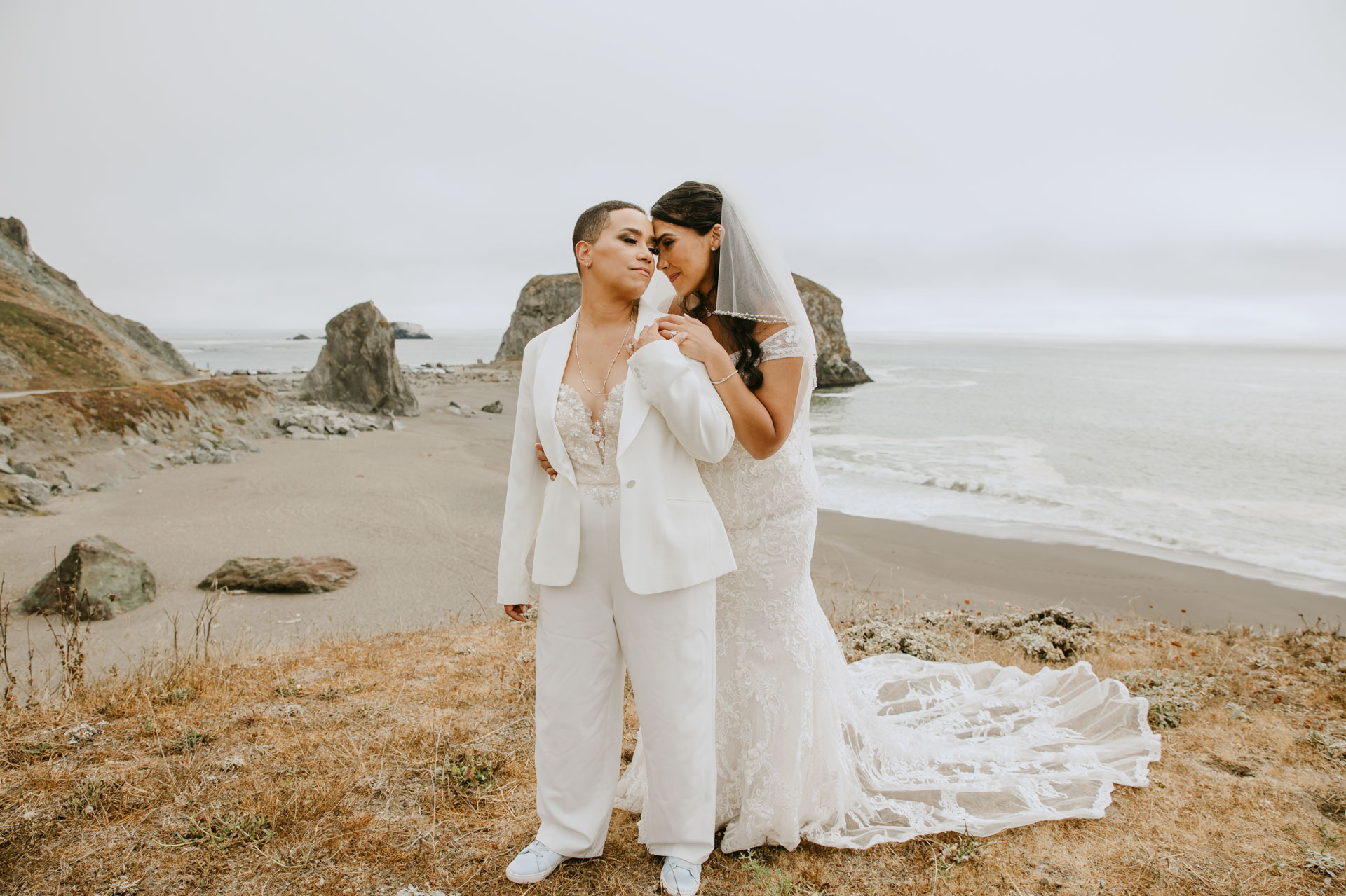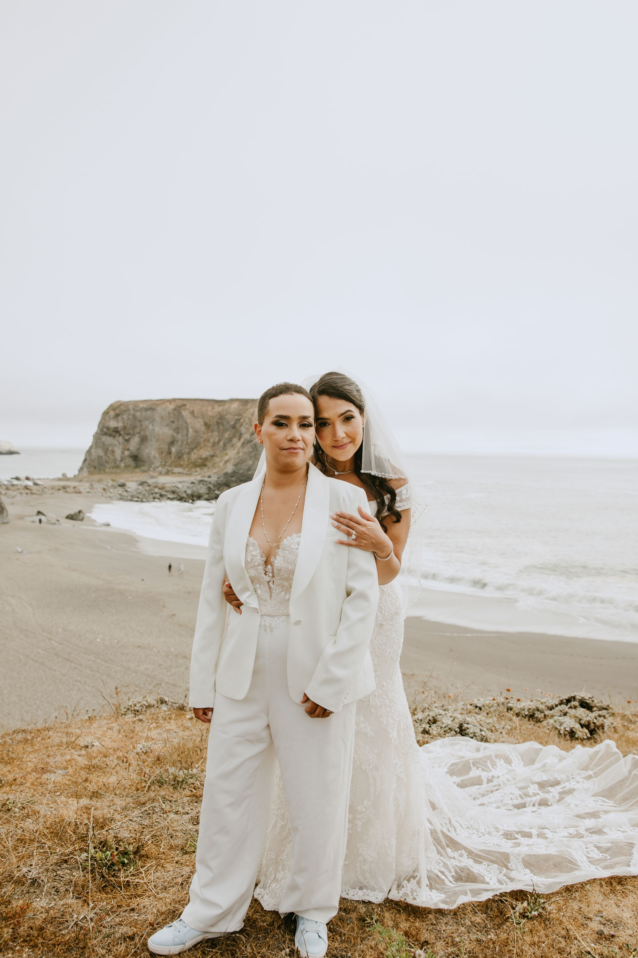 Sometimes, all you need is a handful of your closest friends and a stunning view to get married – and that’s exactly what Samantha and Cristina chose for their Bodega Bay micro wedding. After getting ready at the Airbnb they were staying at with many of their guests, these gorgeous brides tied the knot in an intimate ceremony at a lookout point on a coastal cliff side. With a close friend officiating, they exchanged poetic vows – Cristina’s including an actual poem that she wrote just for her sweetheart on their wedding day. The two celebrated with their friends and immediate family at a nearby restaurant that they rented out to finish the day, where several of their guests gave toasts expressing their love and support for these women and their marriage. It was an honor to witness, and a delight to capture this day – many thanks and best wishes to these brides!