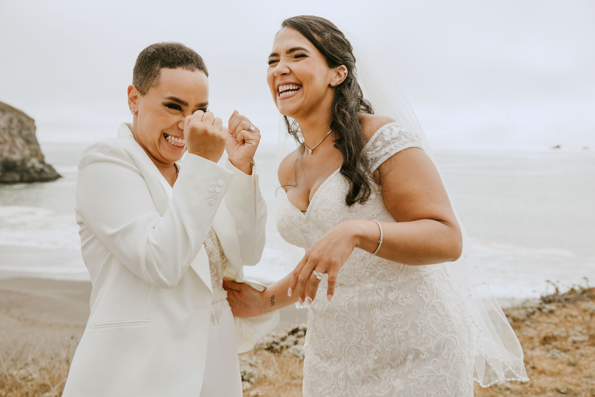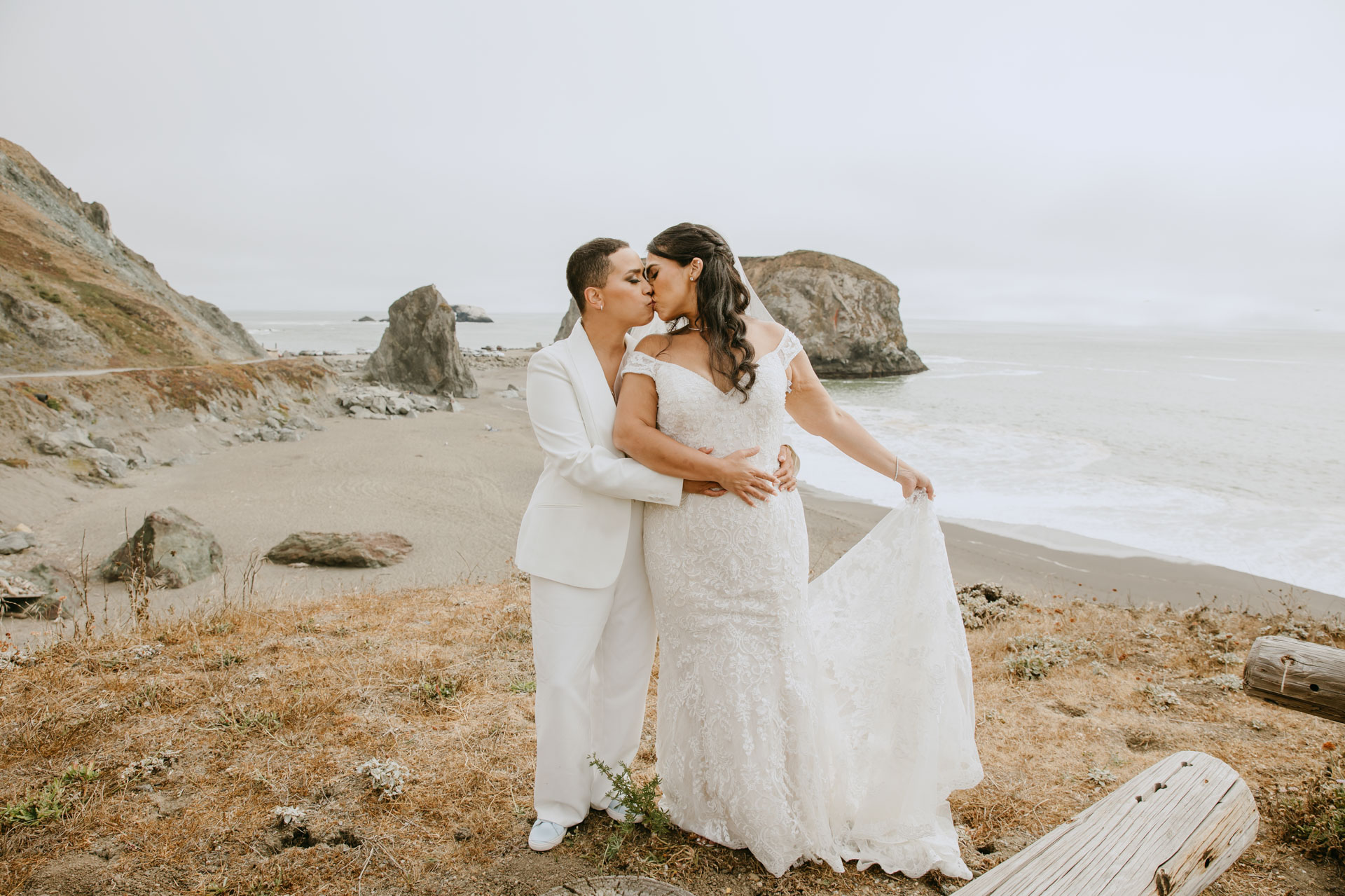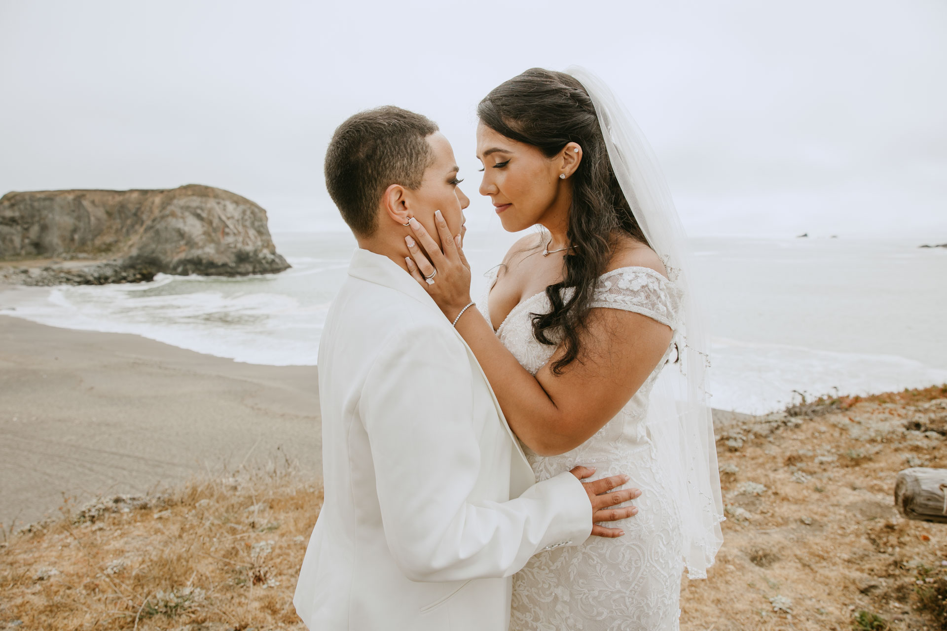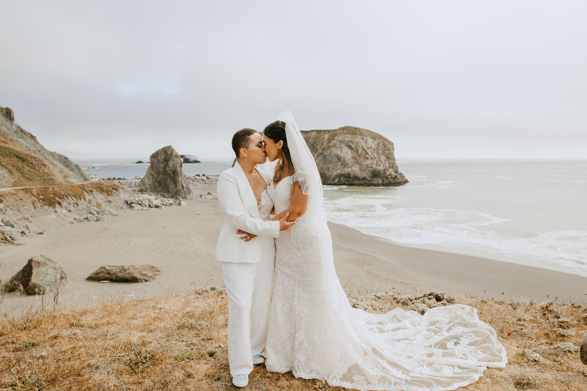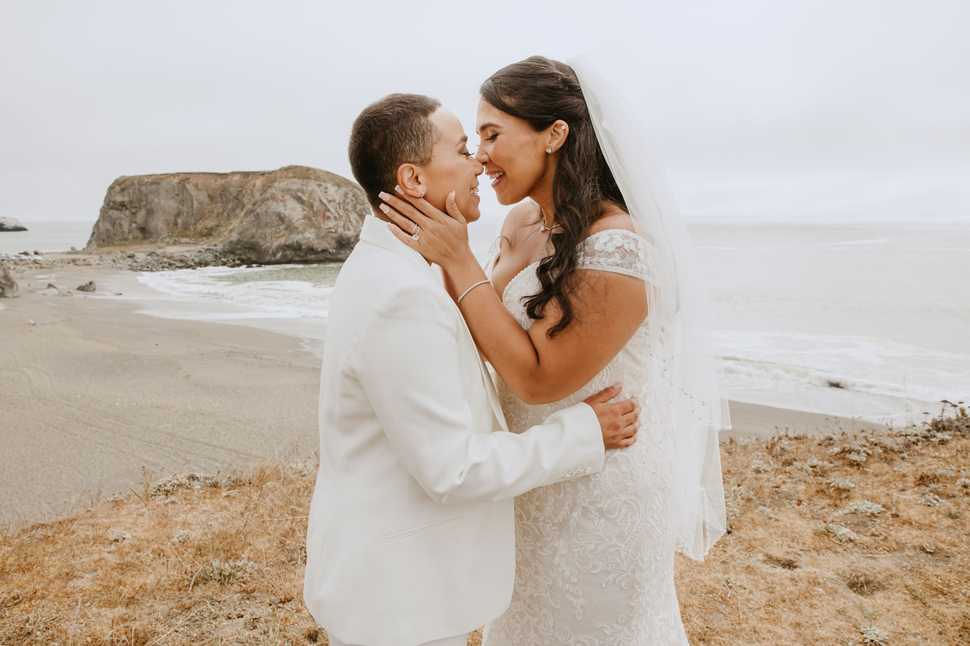 Sometimes, all you need is a handful of your closest friends and a stunning view to get married – and that’s exactly what Samantha and Cristina chose for their Bodega Bay micro wedding. After getting ready at the Airbnb they were staying at with many of their guests, these gorgeous brides tied the knot in an intimate ceremony at a lookout point on a coastal cliff side. With a close friend officiating, they exchanged poetic vows – Cristina’s including an actual poem that she wrote just for her sweetheart on their wedding day. The two celebrated with their friends and immediate family at a nearby restaurant that they rented out to finish the day, where several of their guests gave toasts expressing their love and support for these women and their marriage. It was an honor to witness, and a delight to capture this day – many thanks and best wishes to these brides!