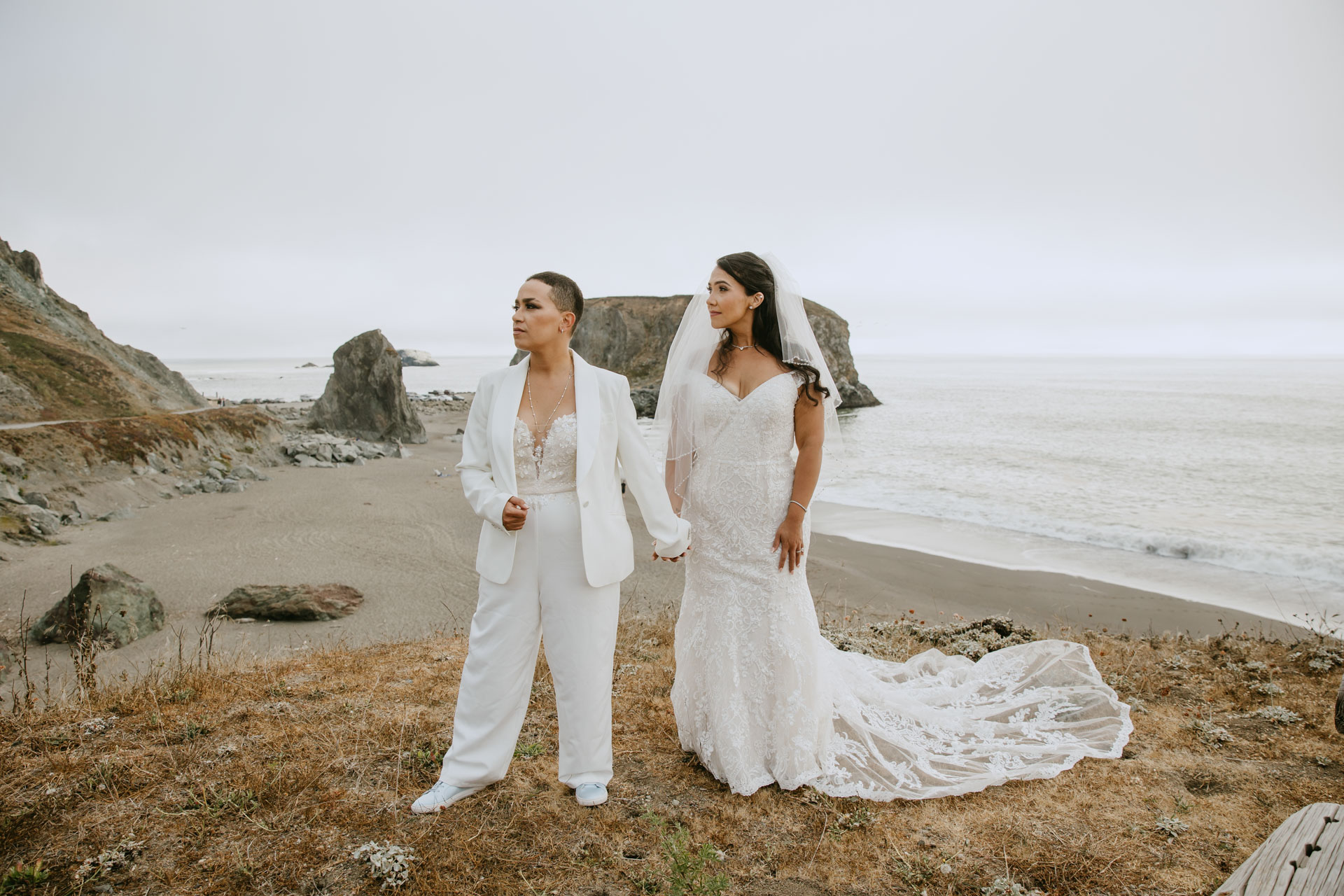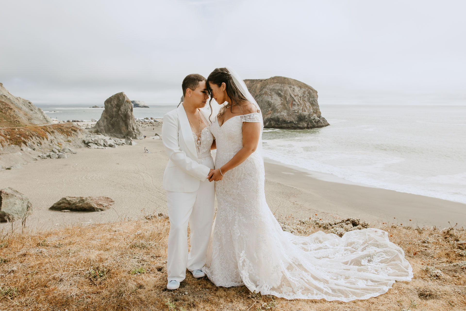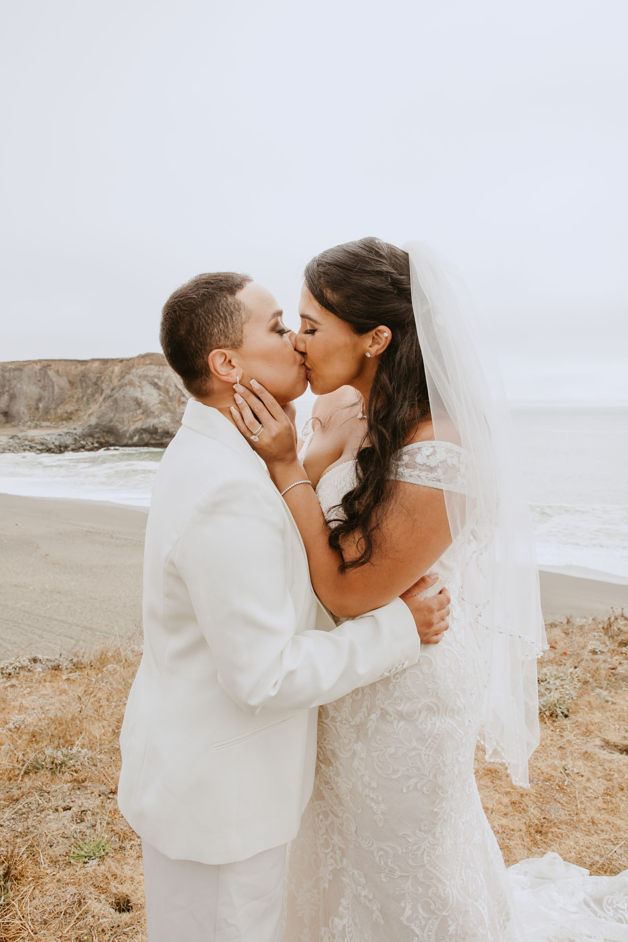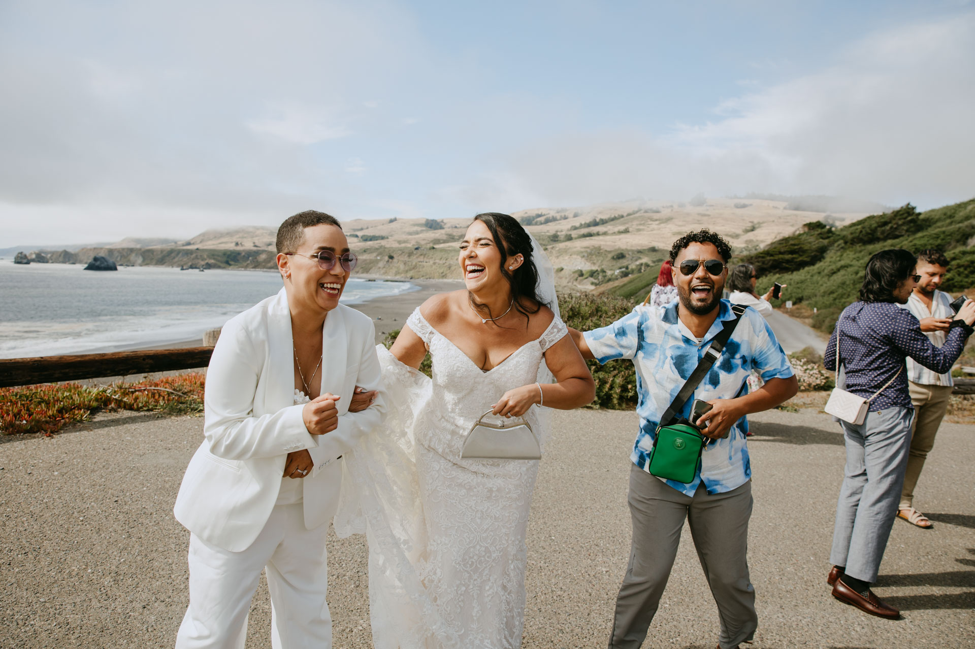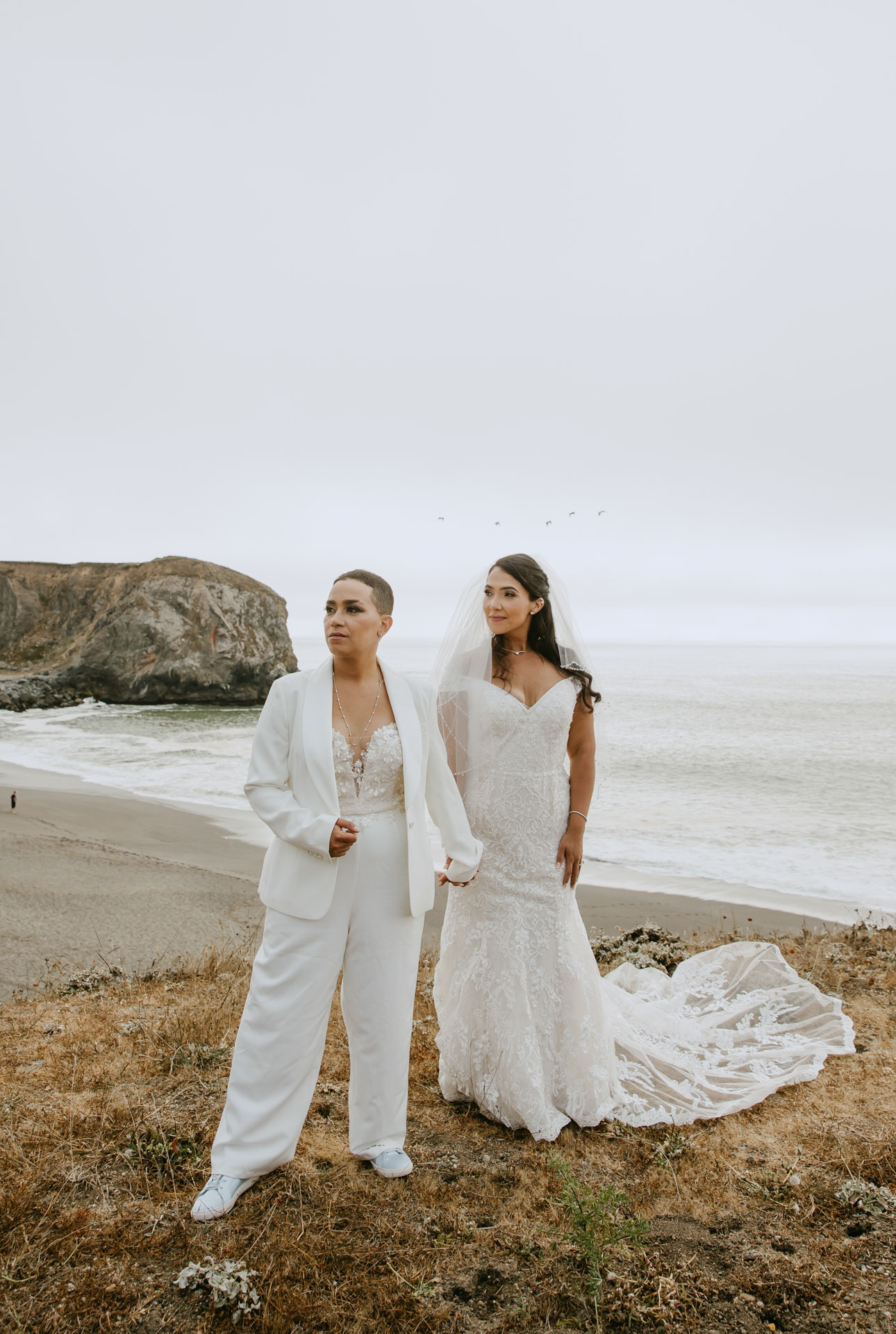 Sometimes, all you need is a handful of your closest friends and a stunning view to get married – and that’s exactly what Samantha and Cristina chose for their Bodega Bay micro wedding. After getting ready at the Airbnb they were staying at with many of their guests, these gorgeous brides tied the knot in an intimate ceremony at a lookout point on a coastal cliff side. With a close friend officiating, they exchanged poetic vows – Cristina’s including an actual poem that she wrote just for her sweetheart on their wedding day. The two celebrated with their friends and immediate family at a nearby restaurant that they rented out to finish the day, where several of their guests gave toasts expressing their love and support for these women and their marriage. It was an honor to witness, and a delight to capture this day – many thanks and best wishes to these brides!