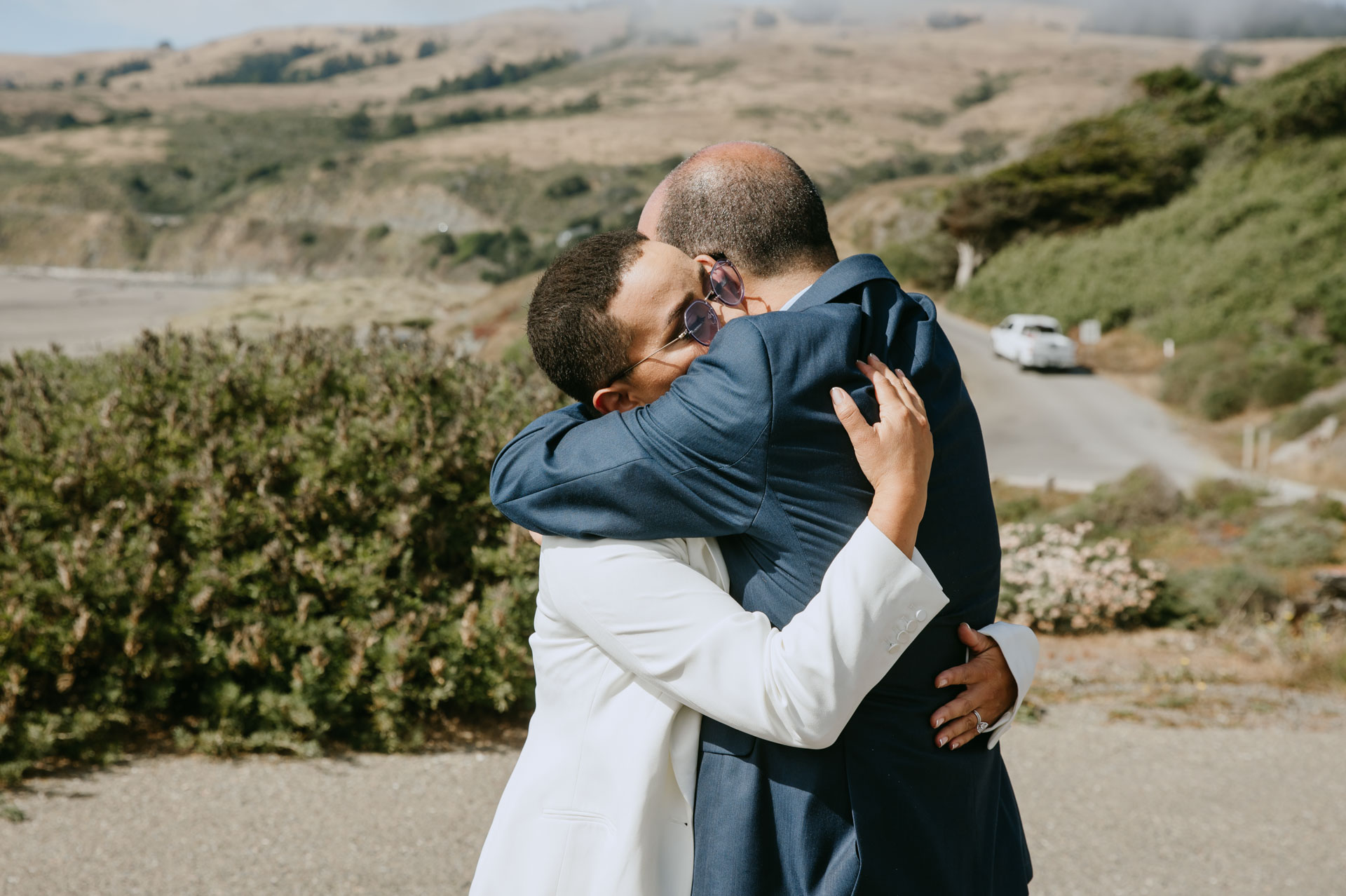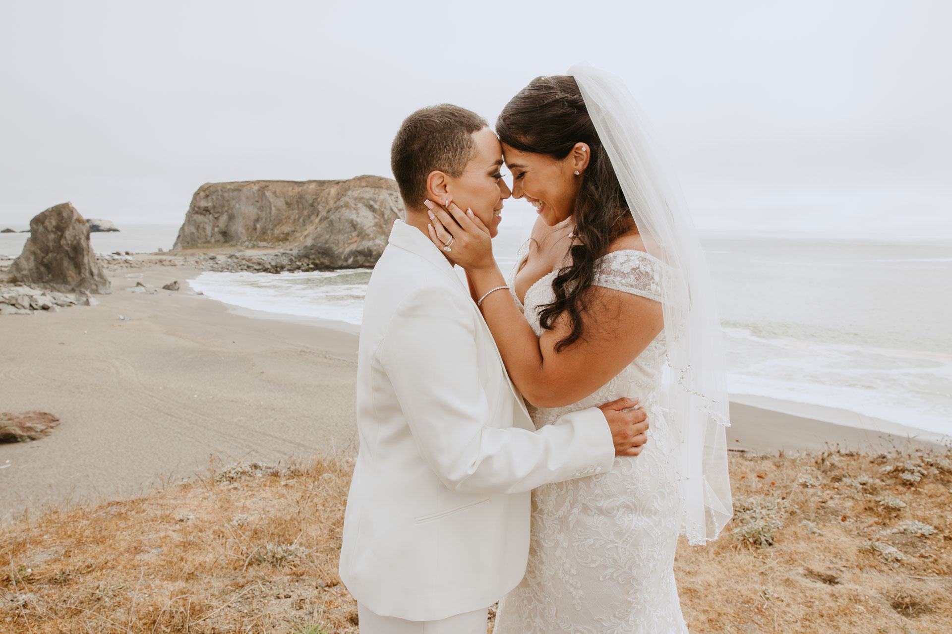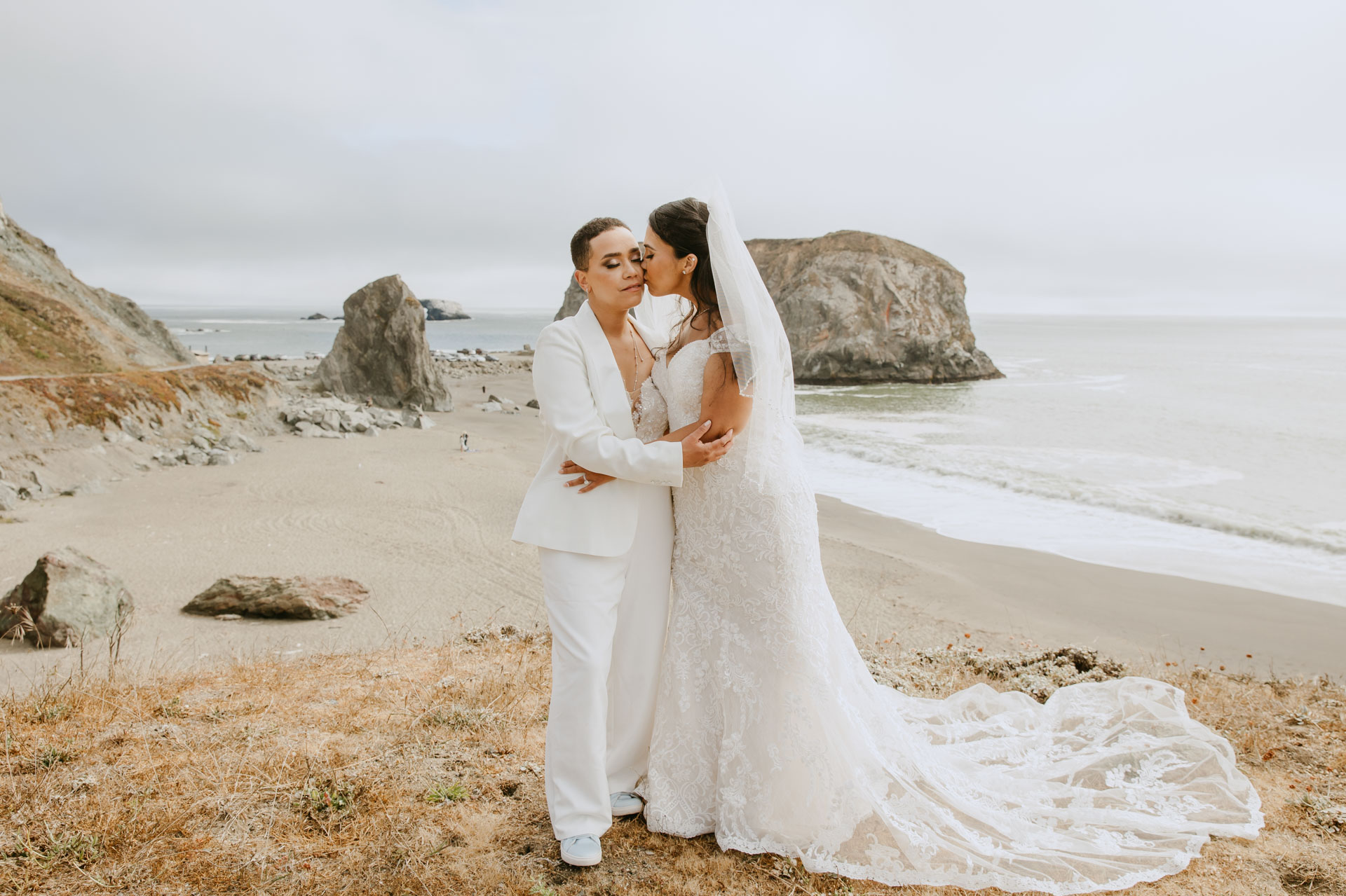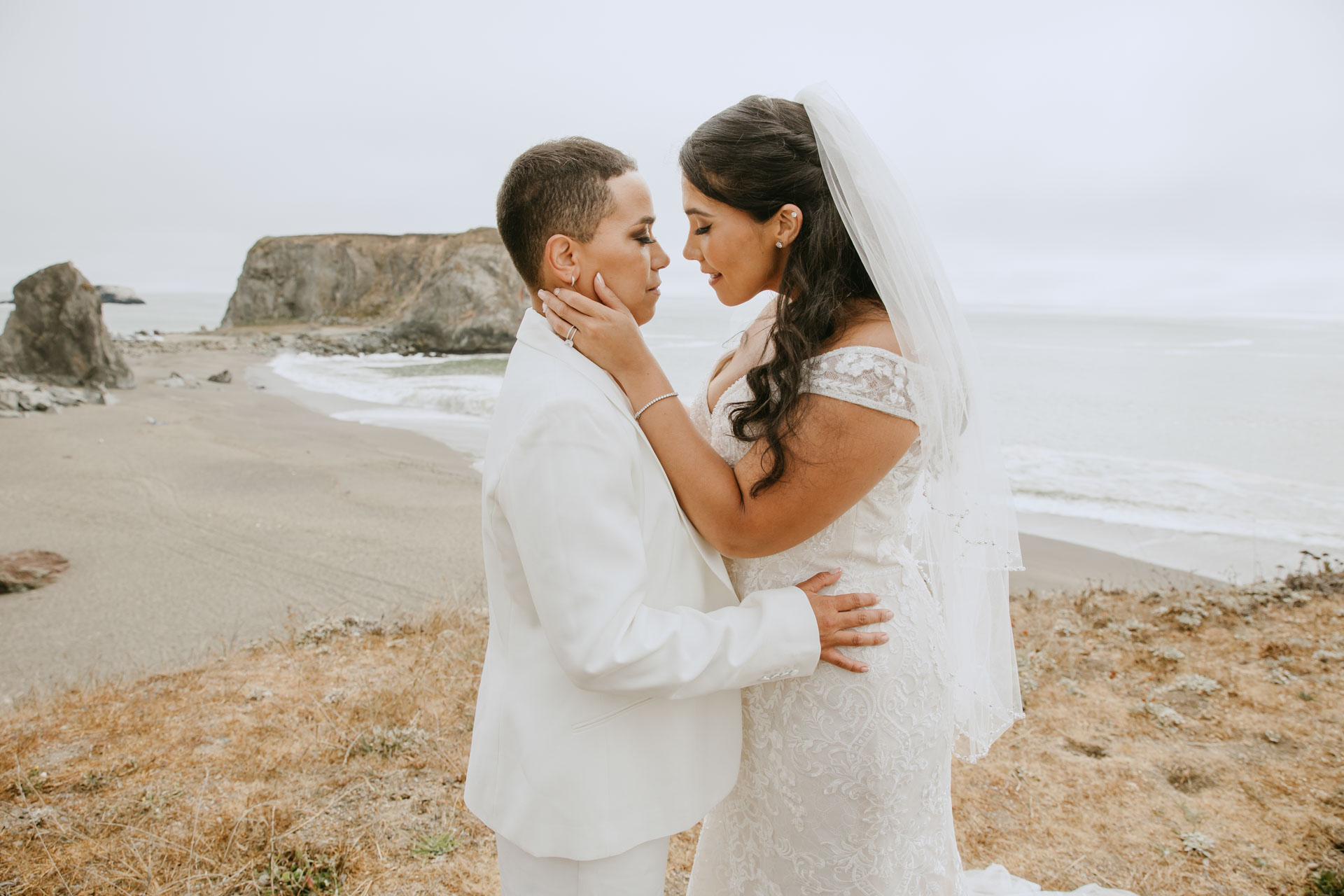 Sometimes, all you need is a handful of your closest friends and a stunning view to get married – and that’s exactly what Samantha and Cristina chose for their Bodega Bay micro wedding. After getting ready at the Airbnb they were staying at with many of their guests, these gorgeous brides tied the knot in an intimate ceremony at a lookout point on a coastal cliff side. With a close friend officiating, they exchanged poetic vows – Cristina’s including an actual poem that she wrote just for her sweetheart on their wedding day. The two celebrated with their friends and immediate family at a nearby restaurant that they rented out to finish the day, where several of their guests gave toasts expressing their love and support for these women and their marriage. It was an honor to witness, and a delight to capture this day – many thanks and best wishes to these brides!
