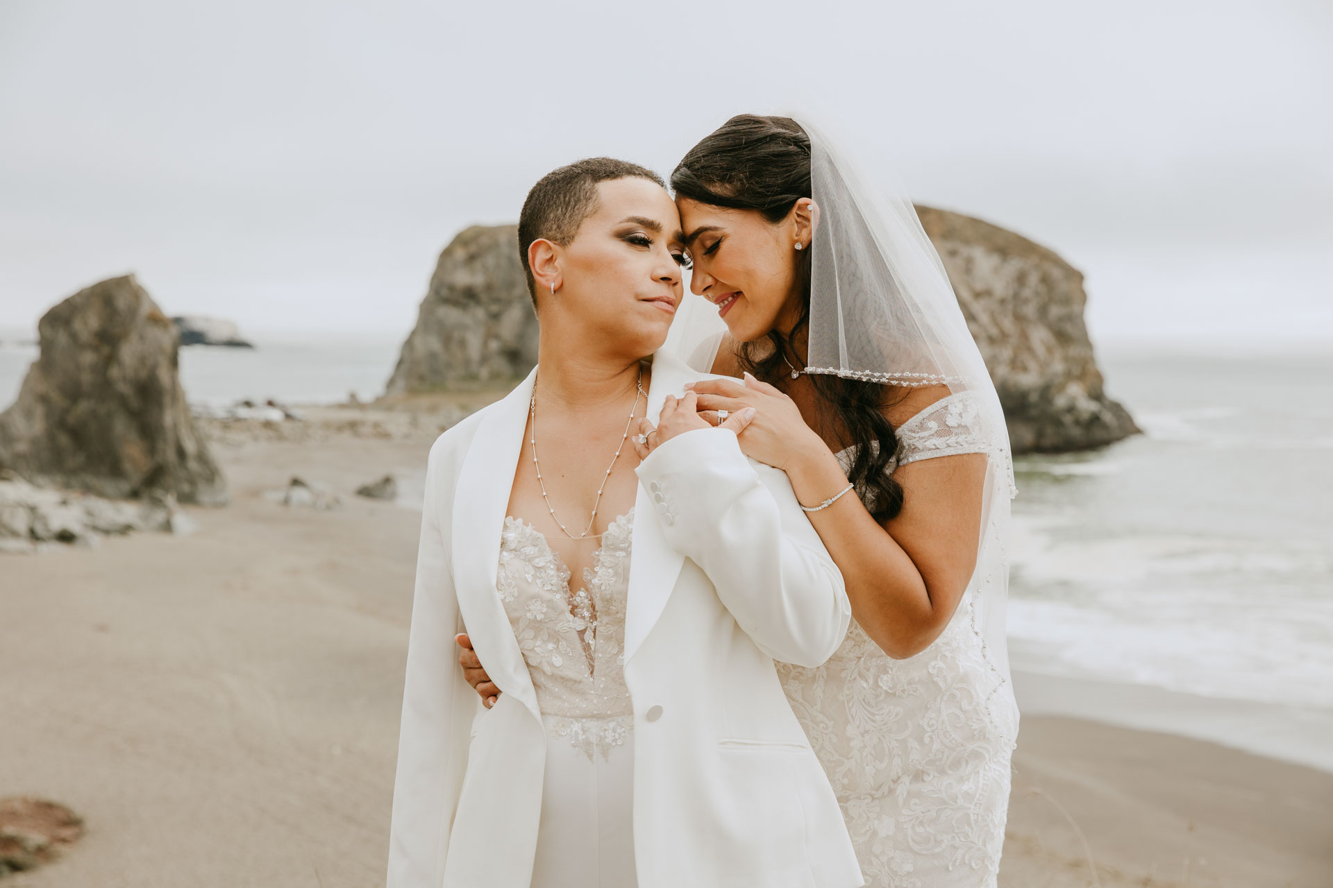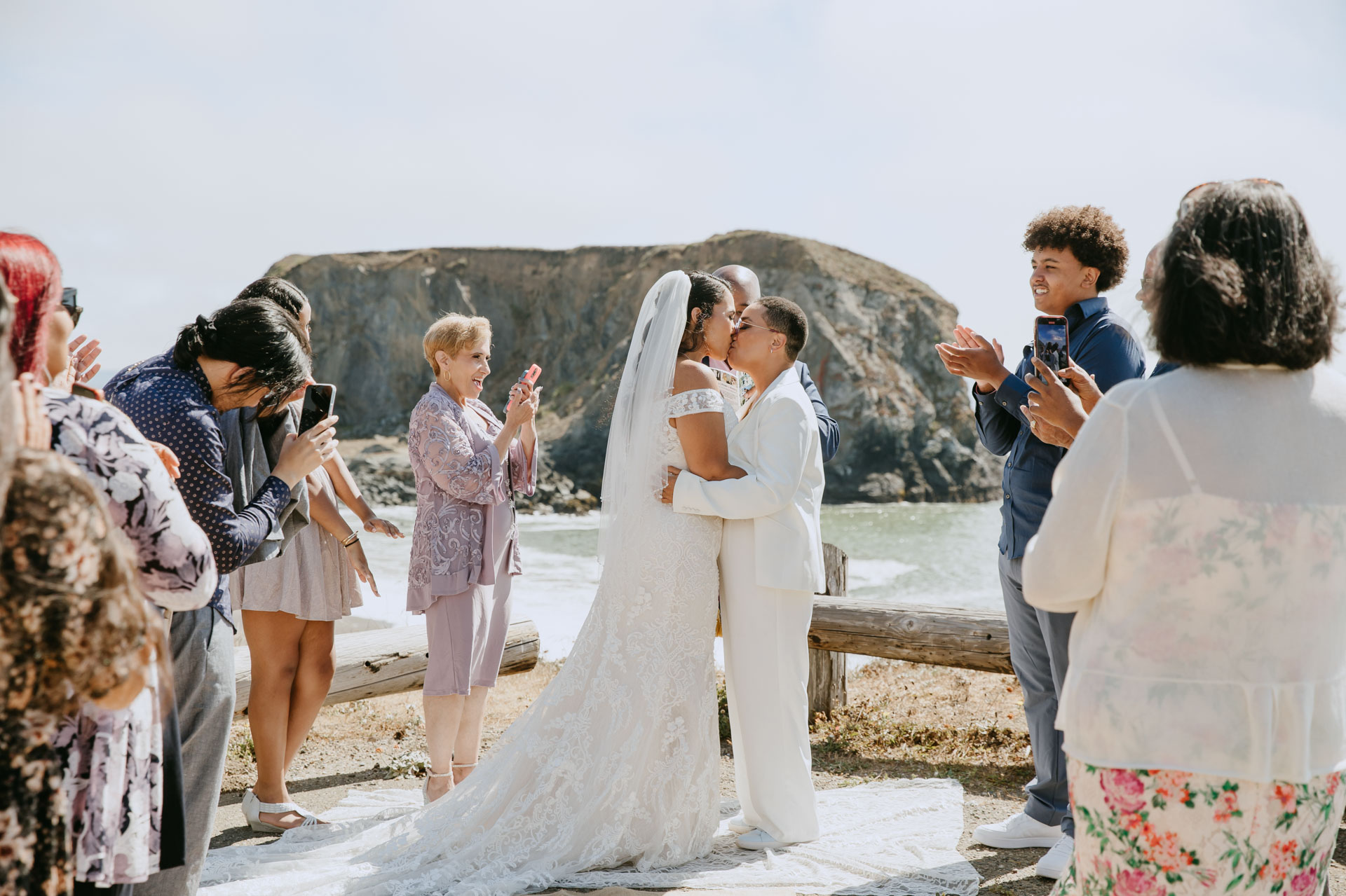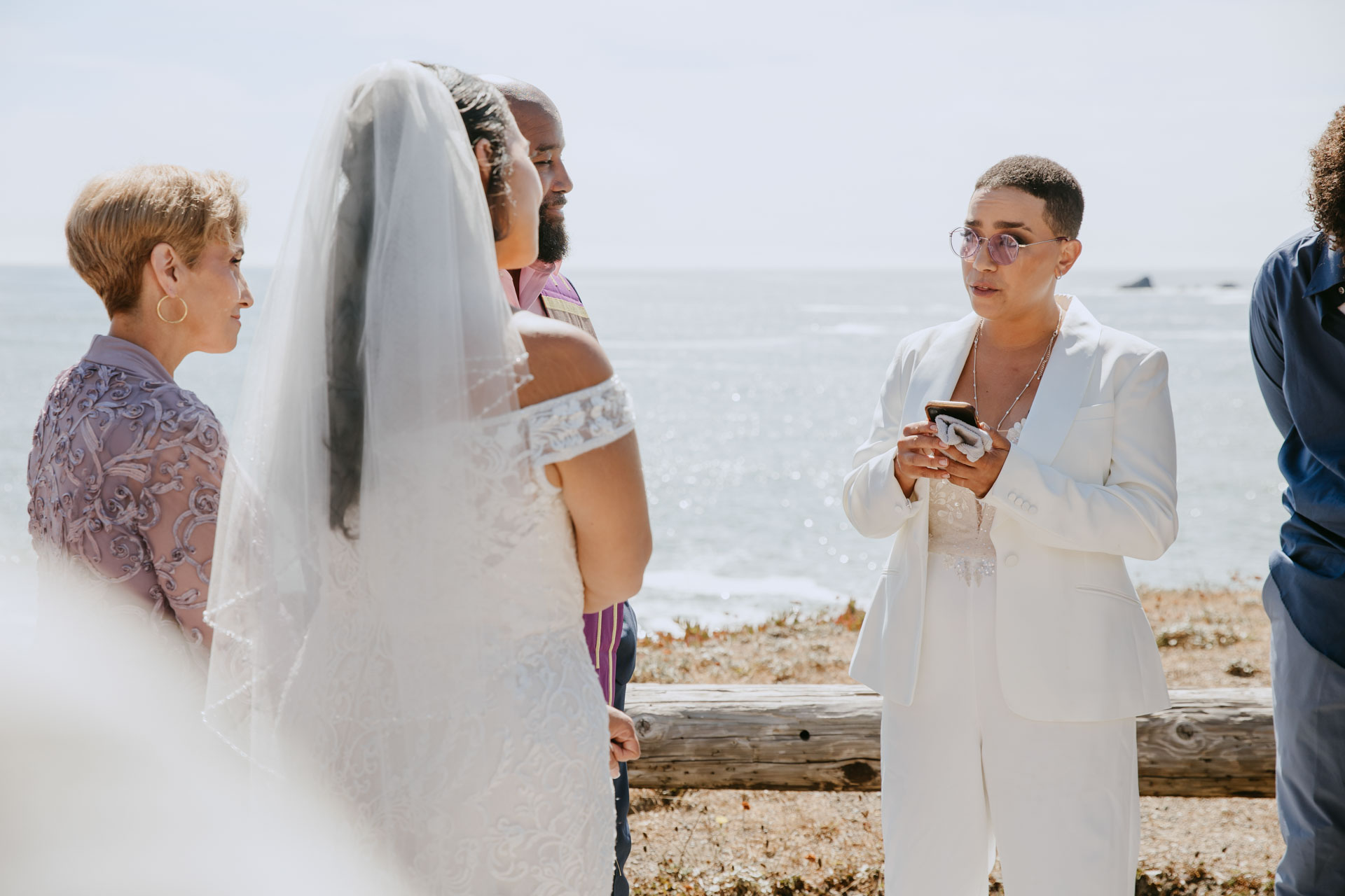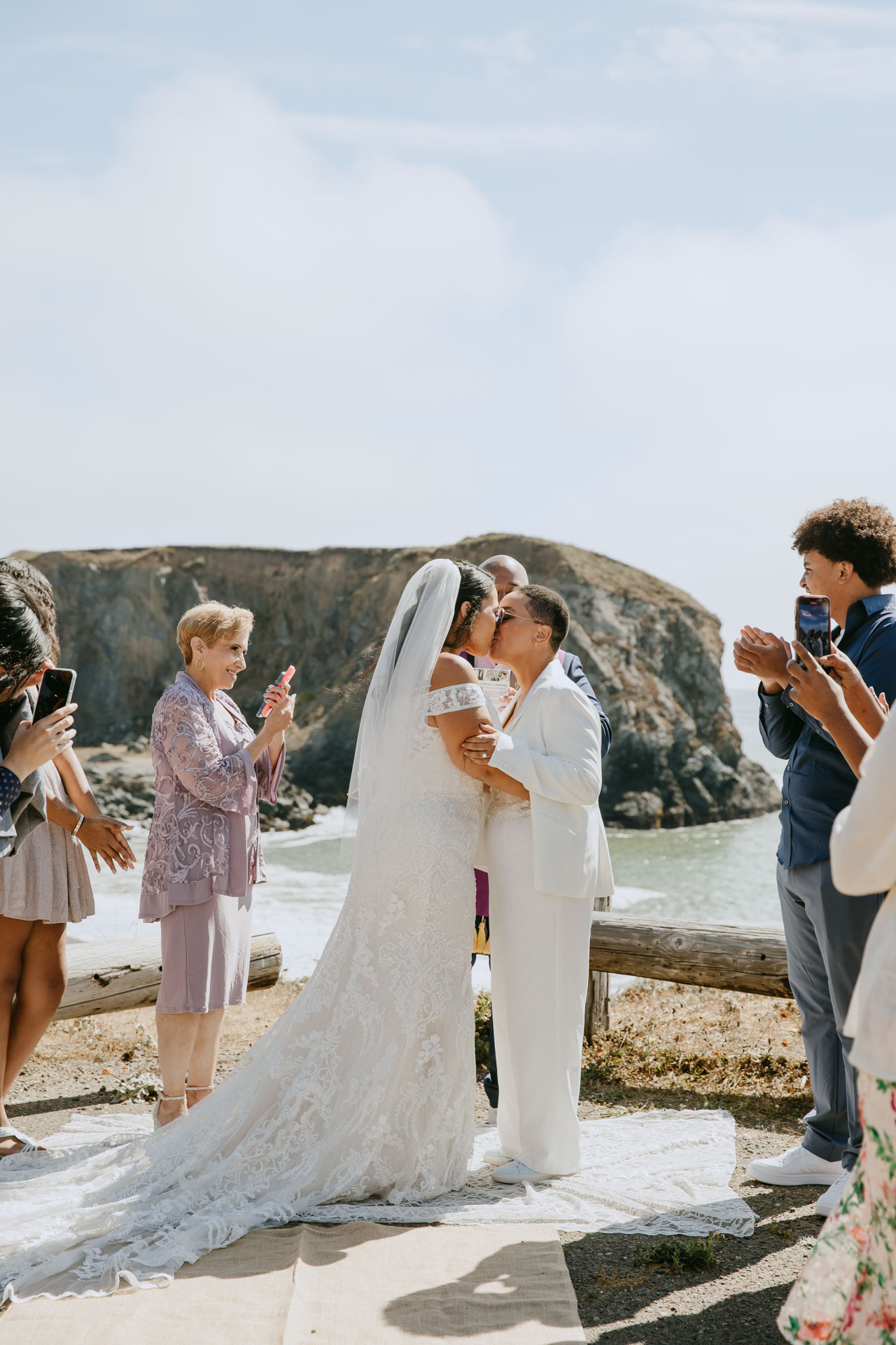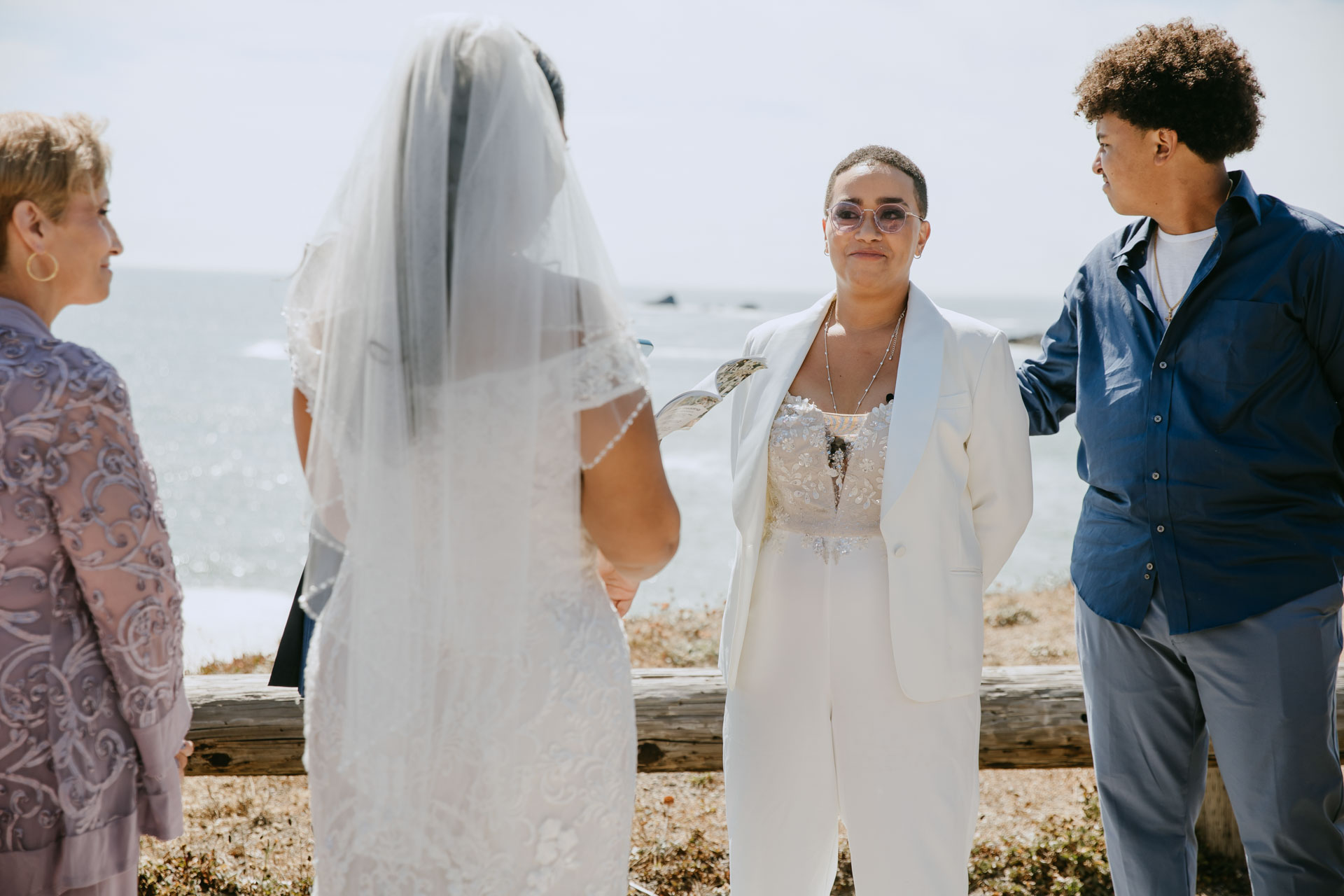 Sometimes, all you need is a handful of your closest friends and a stunning view to get married – and that’s exactly what Samantha and Cristina chose for their Bodega Bay micro wedding. After getting ready at the Airbnb they were staying at with many of their guests, these gorgeous brides tied the knot in an intimate ceremony at a lookout point on a coastal cliff side. With a close friend officiating, they exchanged poetic vows – Cristina’s including an actual poem that she wrote just for her sweetheart on their wedding day. The two celebrated with their friends and immediate family at a nearby restaurant that they rented out to finish the day, where several of their guests gave toasts expressing their love and support for these women and their marriage. It was an honor to witness, and a delight to capture this day – many thanks and best wishes to these brides!