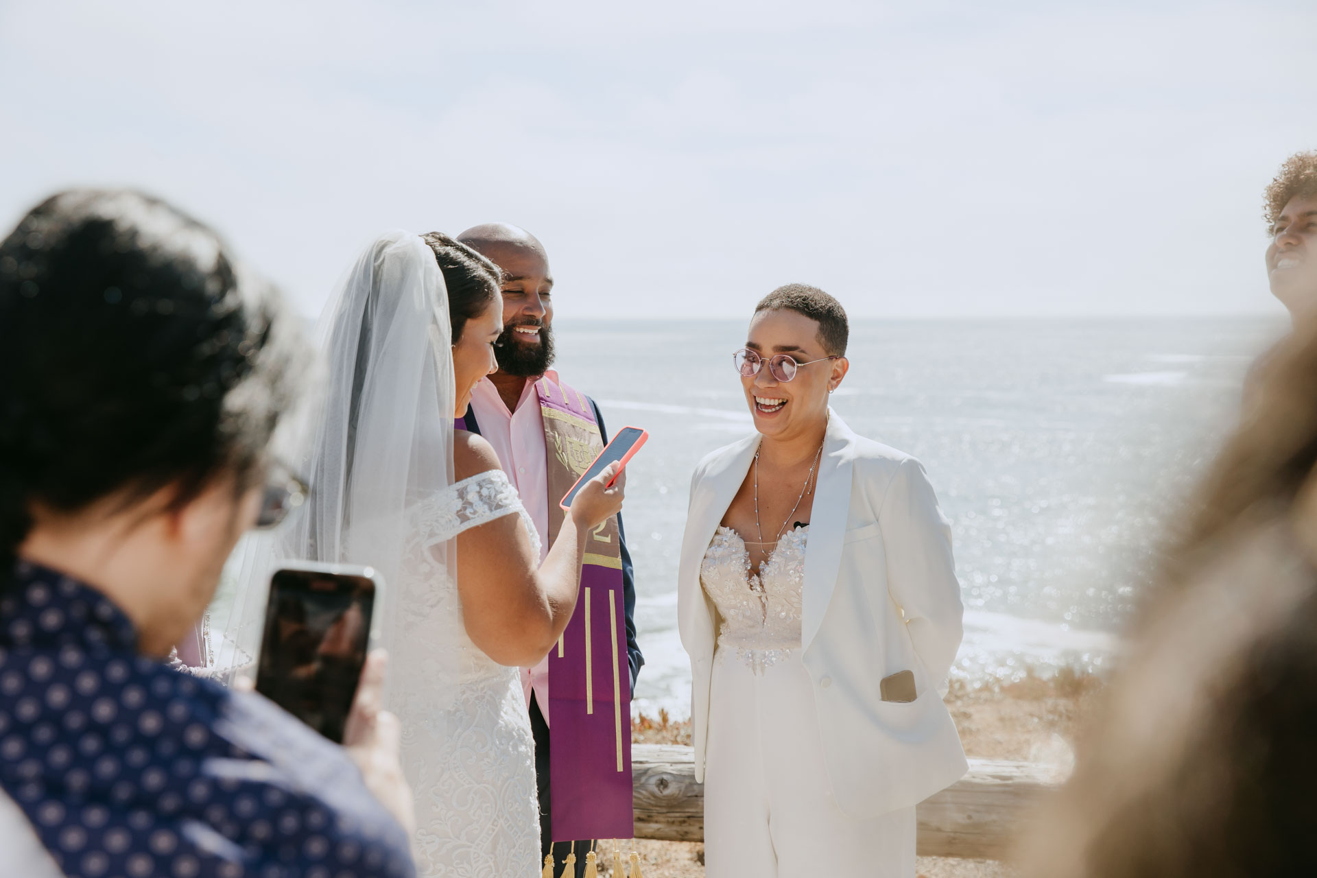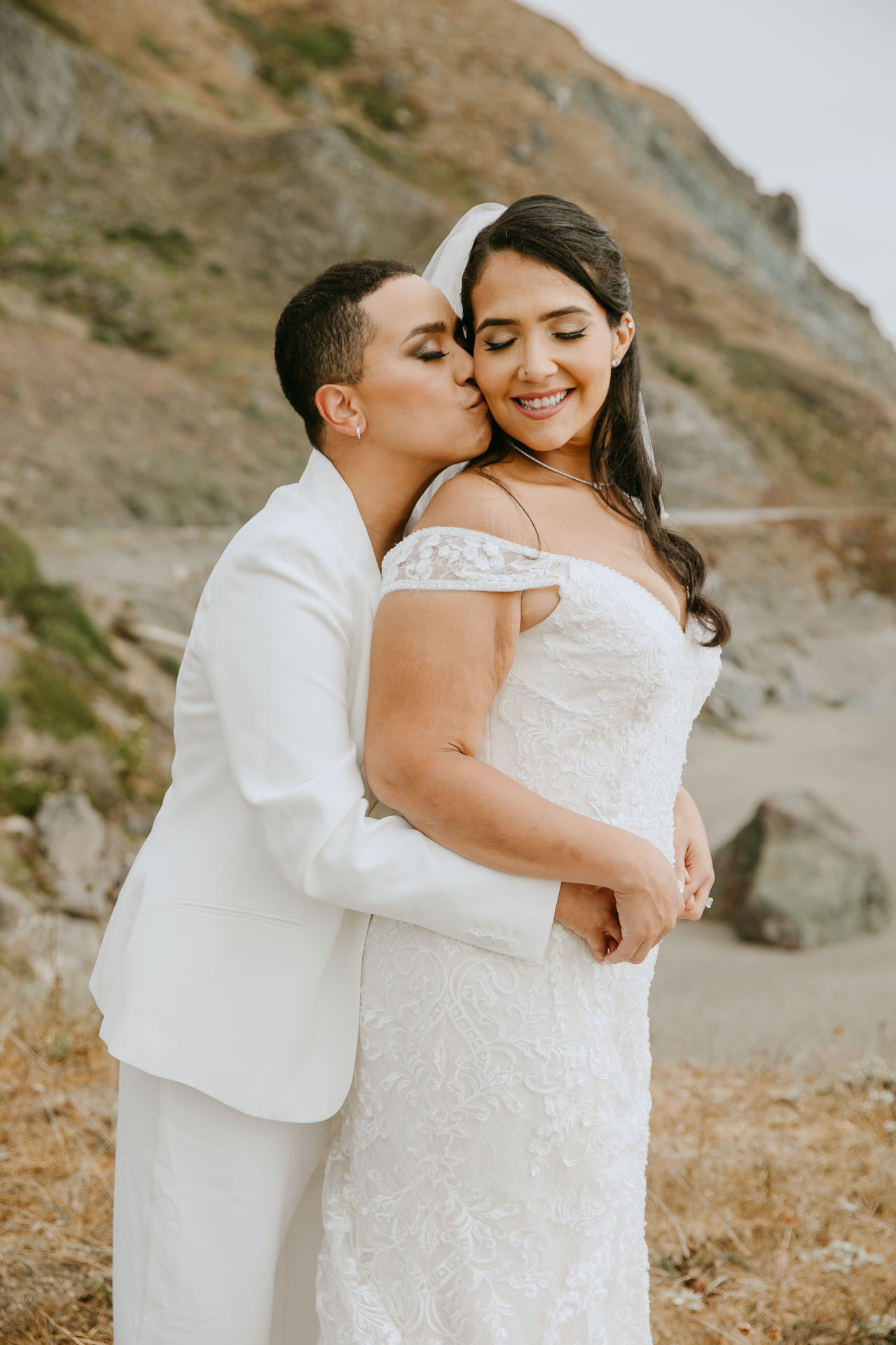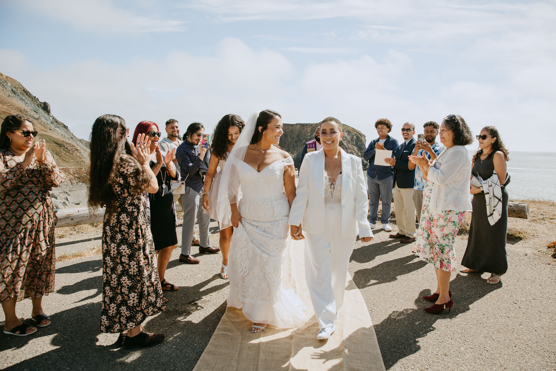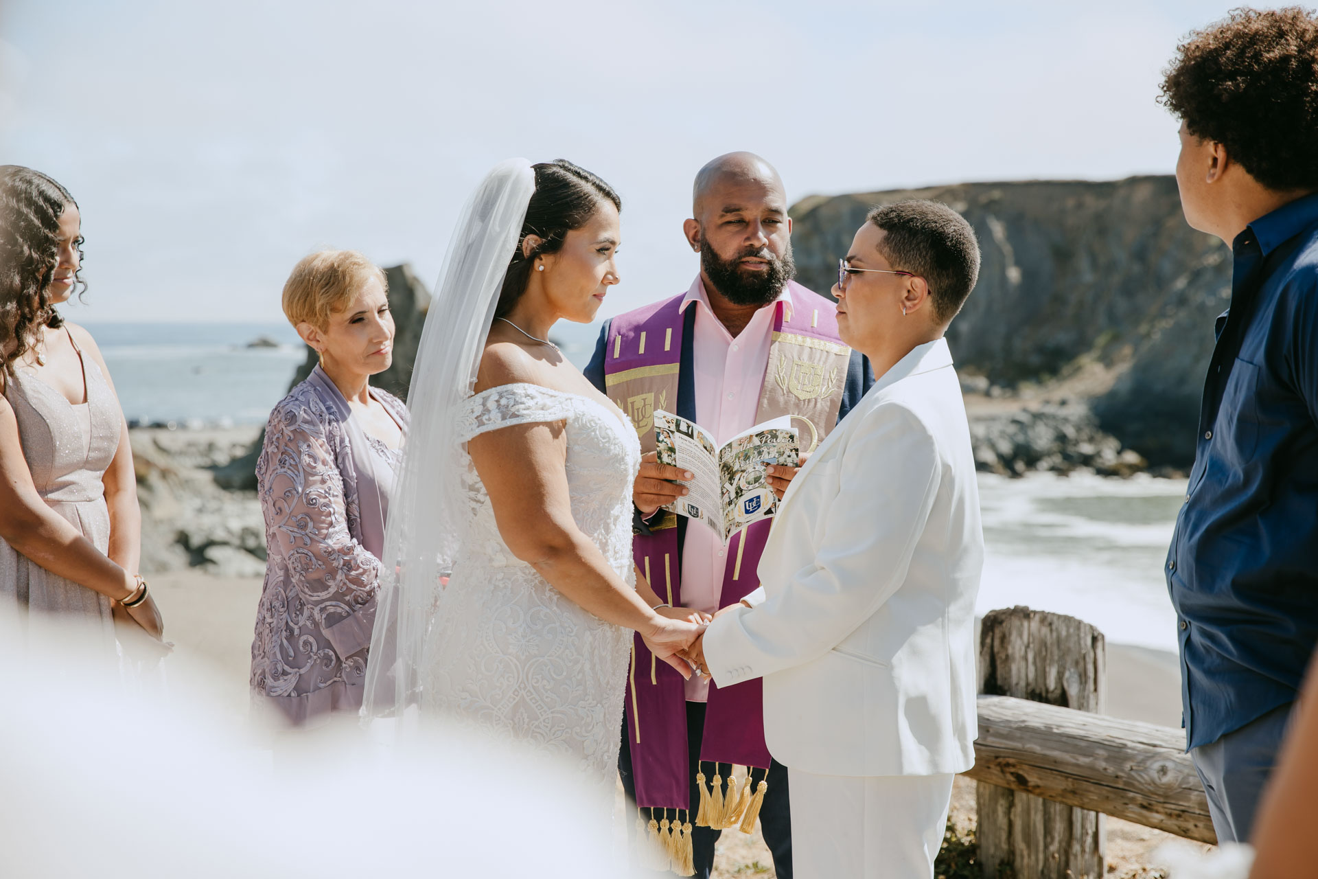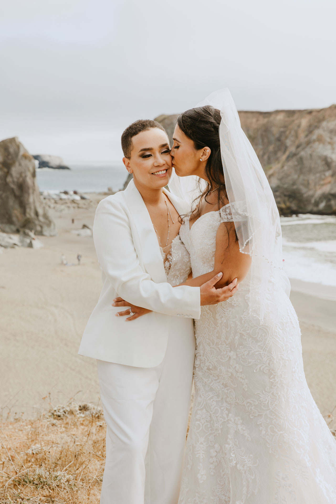 Sometimes, all you need is a handful of your closest friends and a stunning view to get married – and that’s exactly what Samantha and Cristina chose for their Bodega Bay micro wedding. After getting ready at the Airbnb they were staying at with many of their guests, these gorgeous brides tied the knot in an intimate ceremony at a lookout point on a coastal cliff side. With a close friend officiating, they exchanged poetic vows – Cristina’s including an actual poem that she wrote just for her sweetheart on their wedding day. The two celebrated with their friends and immediate family at a nearby restaurant that they rented out to finish the day, where several of their guests gave toasts expressing their love and support for these women and their marriage. It was an honor to witness, and a delight to capture this day – many thanks and best wishes to these brides!