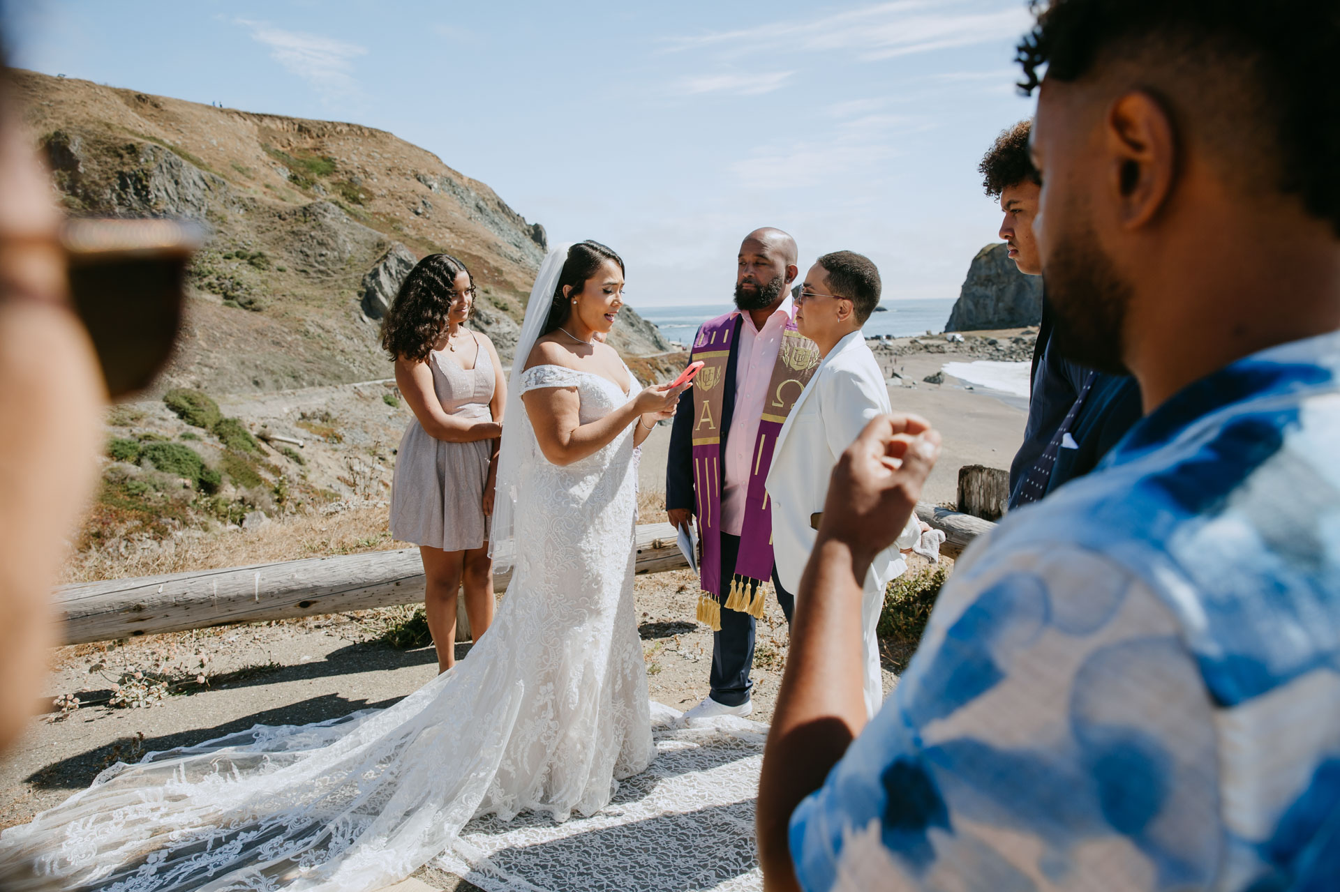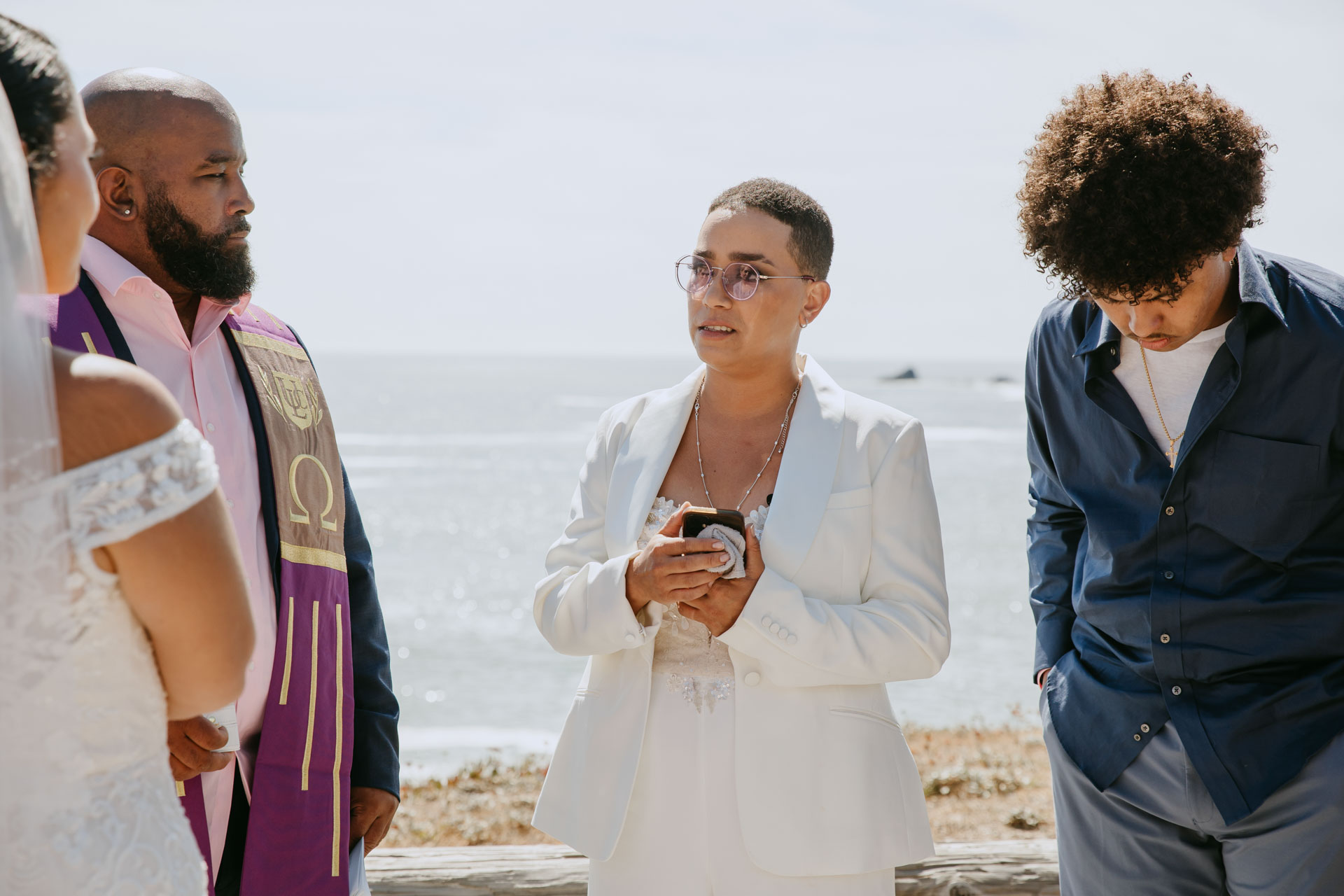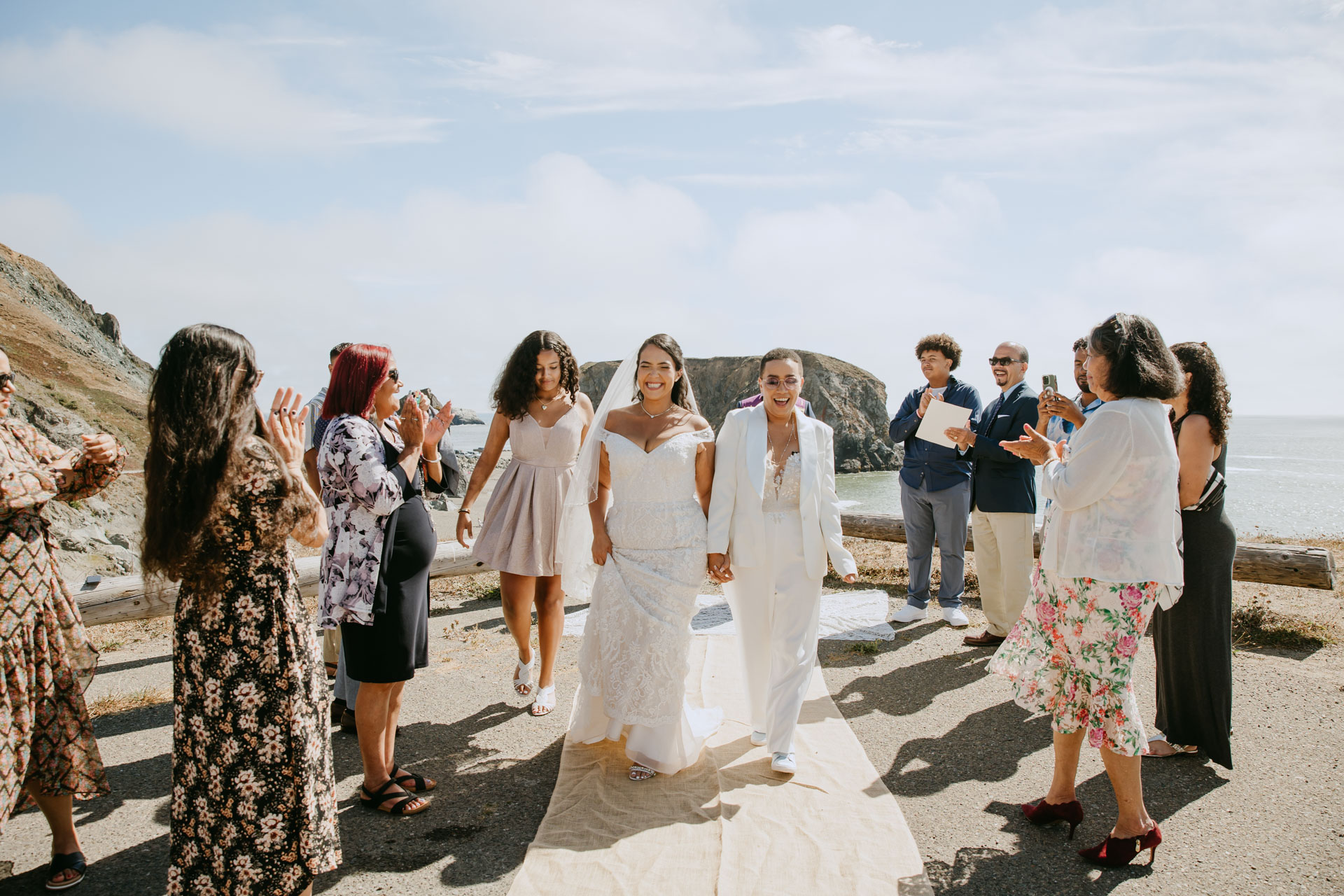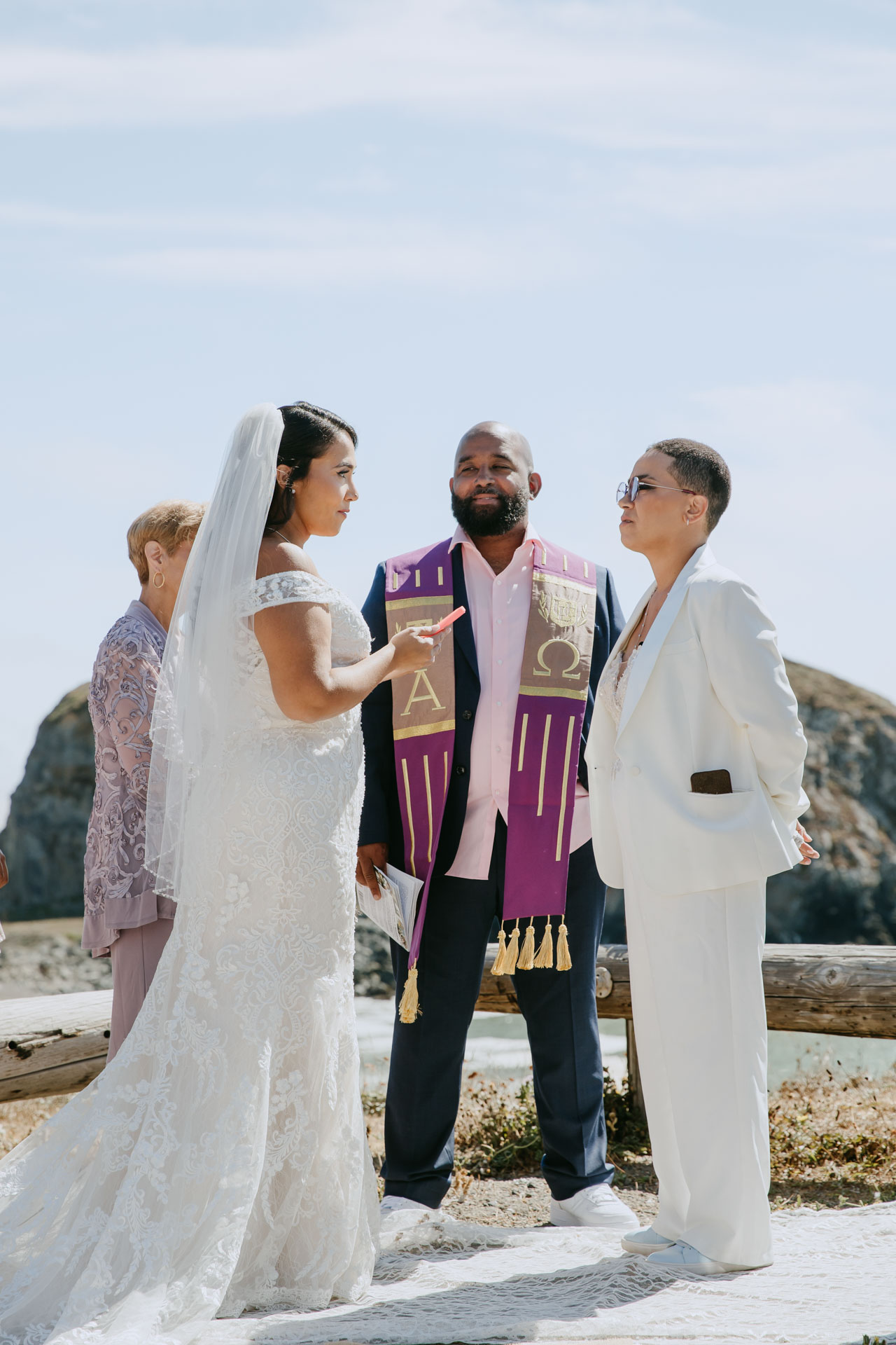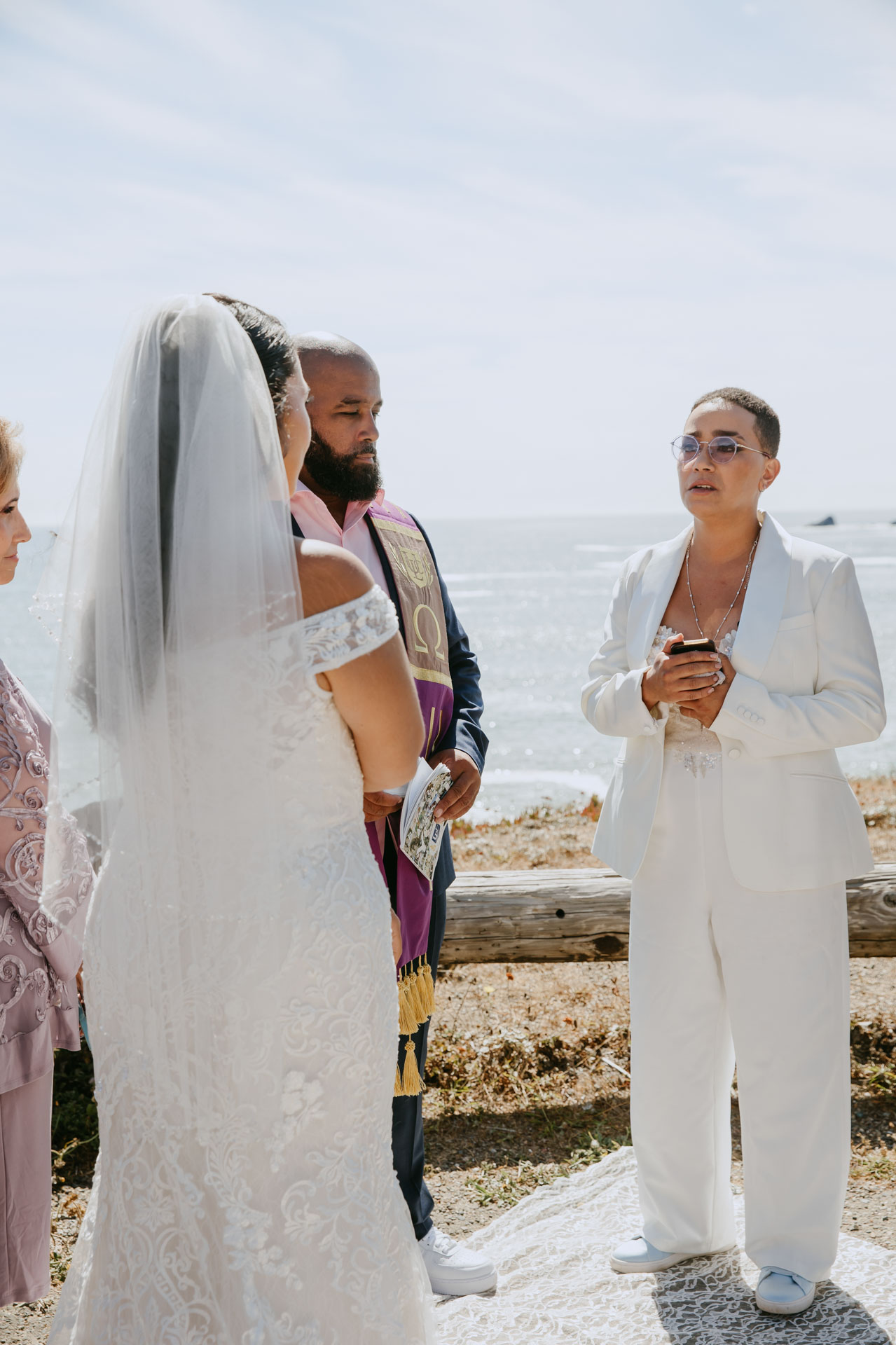 Sometimes, all you need is a handful of your closest friends and a stunning view to get married – and that’s exactly what Samantha and Cristina chose for their Bodega Bay micro wedding. After getting ready at the Airbnb they were staying at with many of their guests, these gorgeous brides tied the knot in an intimate ceremony at a lookout point on a coastal cliff side. With a close friend officiating, they exchanged poetic vows – Cristina’s including an actual poem that she wrote just for her sweetheart on their wedding day. The two celebrated with their friends and immediate family at a nearby restaurant that they rented out to finish the day, where several of their guests gave toasts expressing their love and support for these women and their marriage. It was an honor to witness, and a delight to capture this day – many thanks and best wishes to these brides!