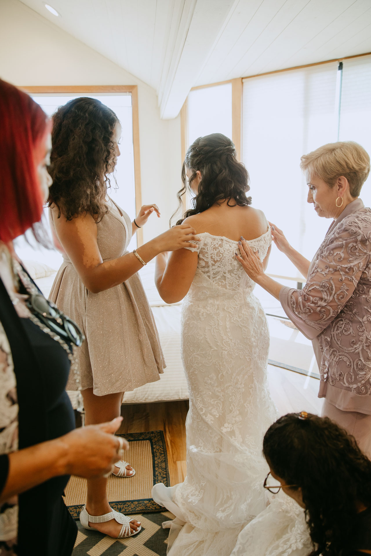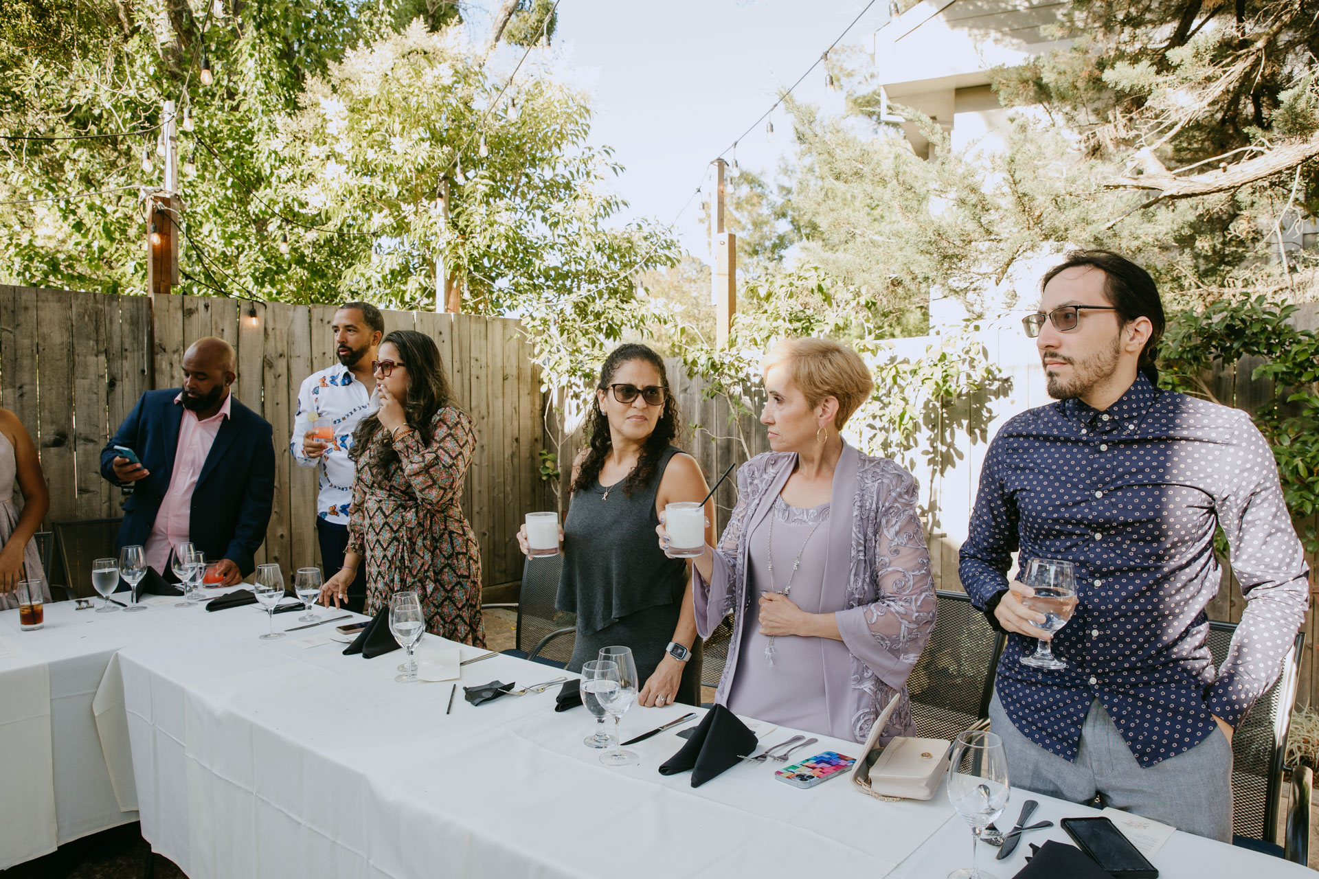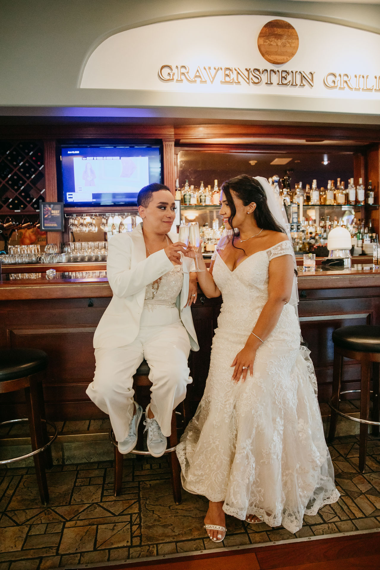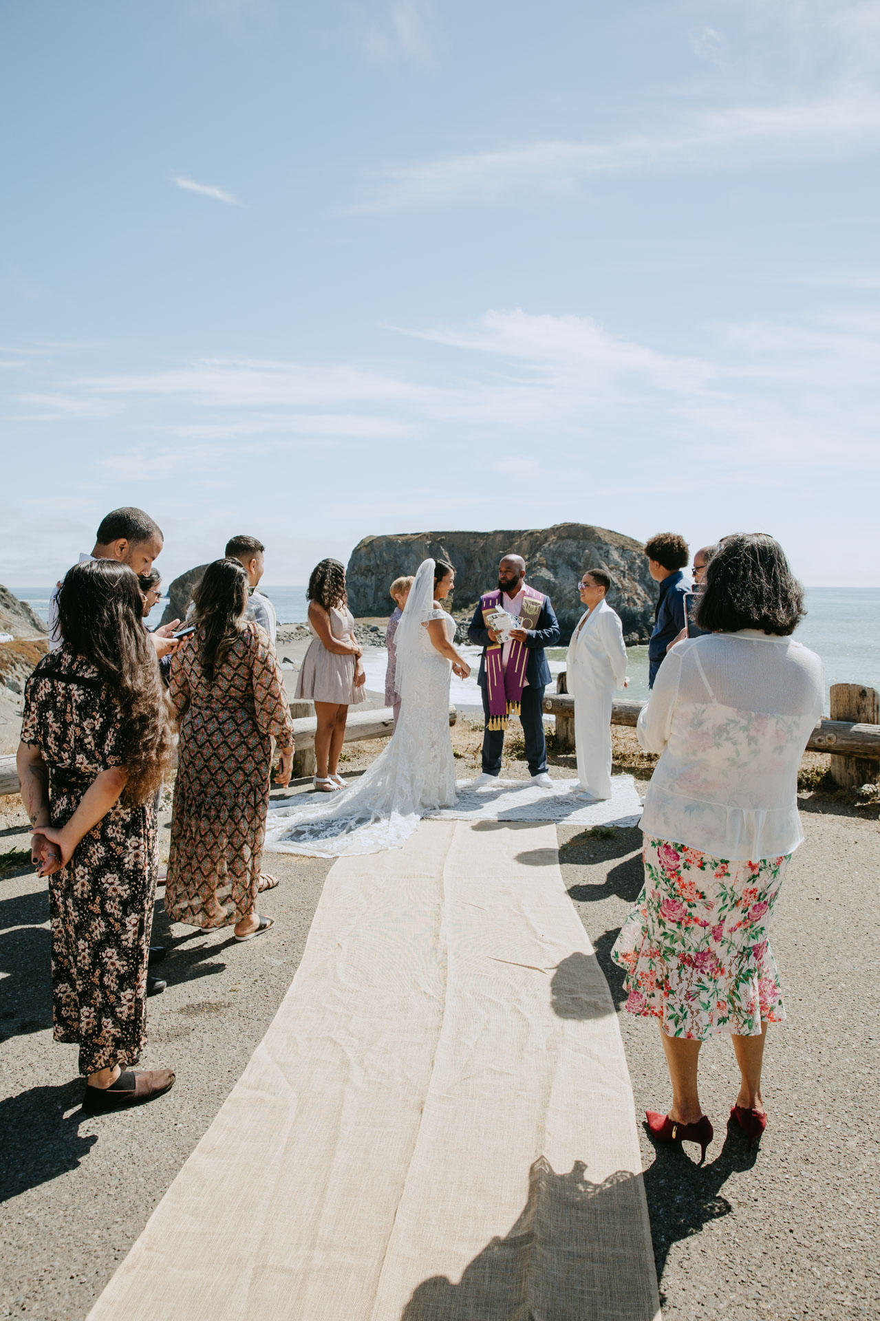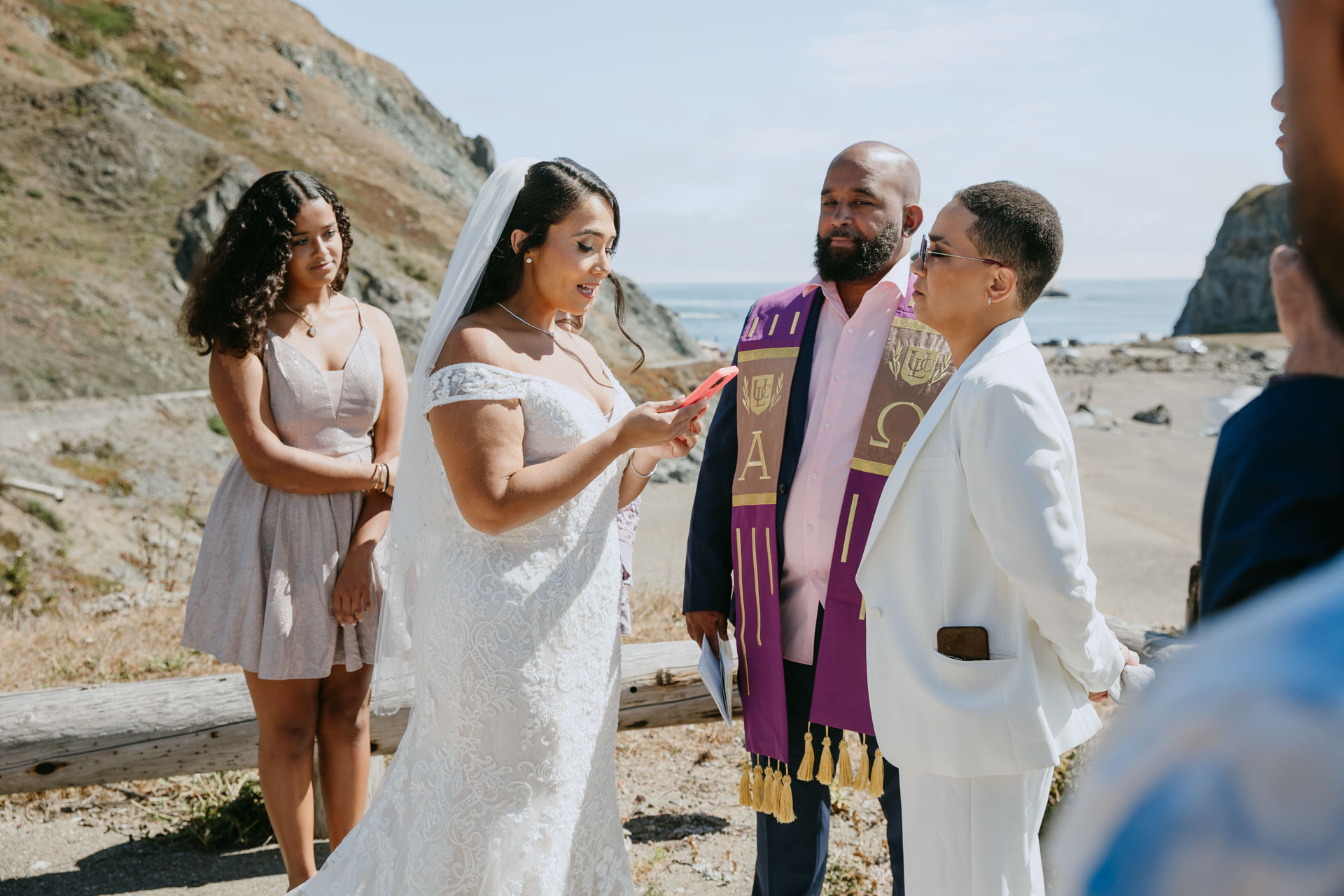 Sometimes, all you need is a handful of your closest friends and a stunning view to get married – and that’s exactly what Samantha and Cristina chose for their Bodega Bay micro wedding. After getting ready at the Airbnb they were staying at with many of their guests, these gorgeous brides tied the knot in an intimate ceremony at a lookout point on a coastal cliff side. With a close friend officiating, they exchanged poetic vows – Cristina’s including an actual poem that she wrote just for her sweetheart on their wedding day. The two celebrated with their friends and immediate family at a nearby restaurant that they rented out to finish the day, where several of their guests gave toasts expressing their love and support for these women and their marriage. It was an honor to witness, and a delight to capture this day – many thanks and best wishes to these brides!