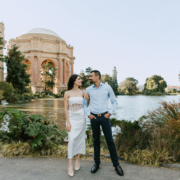 When it comes to engagement photos, should you choose classy and sophisticated, or fun and casual? Tabitha and Sarn chose both! We started at the Legion of Honor, for their all-black dress-up outfits. We arrived just before closing for a few photos in the courtyard, and took the rest around the exterior. The wind made it a bit extra chilly on this moody, overcast day, but it also added some drama, tossing Tabitha’s hair and skirt!