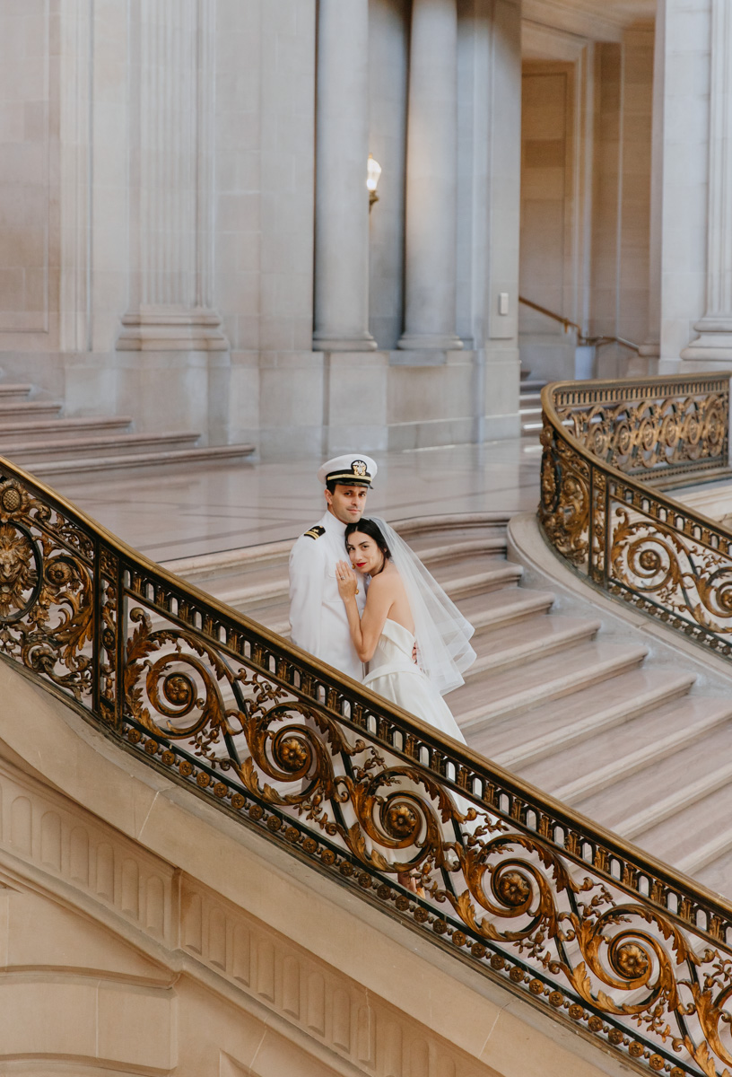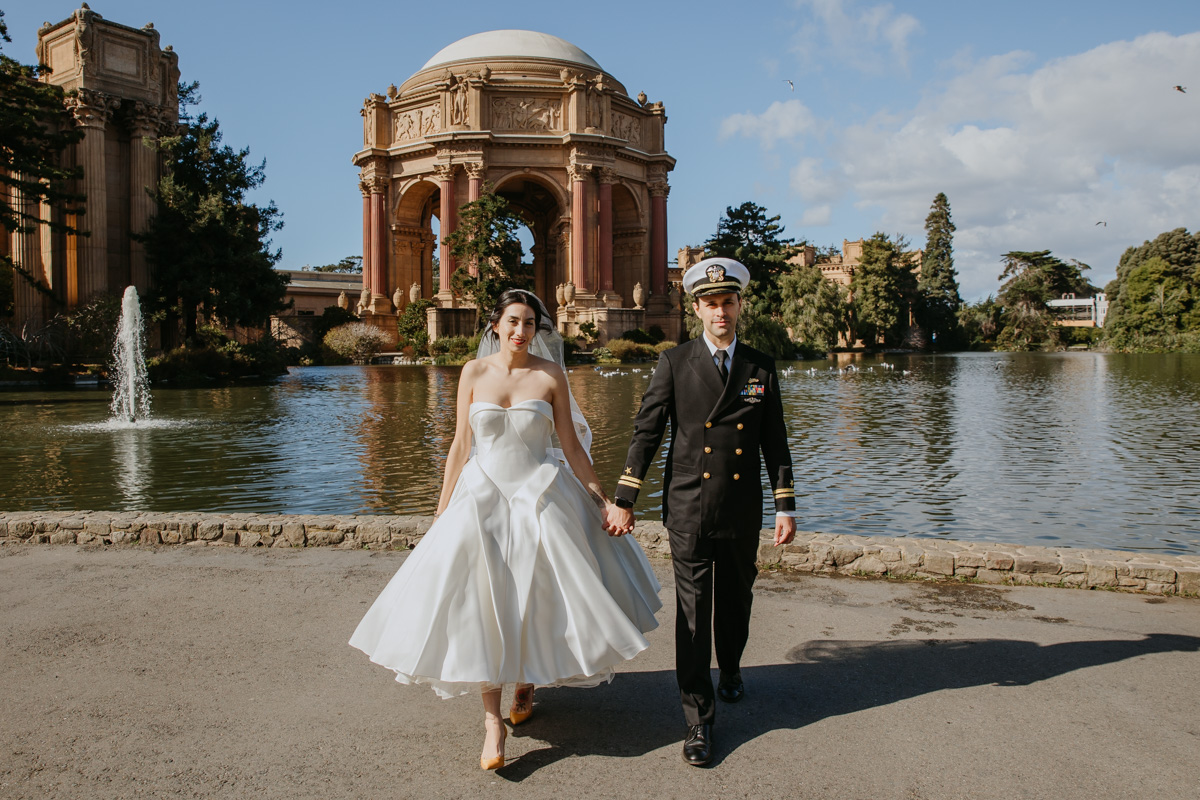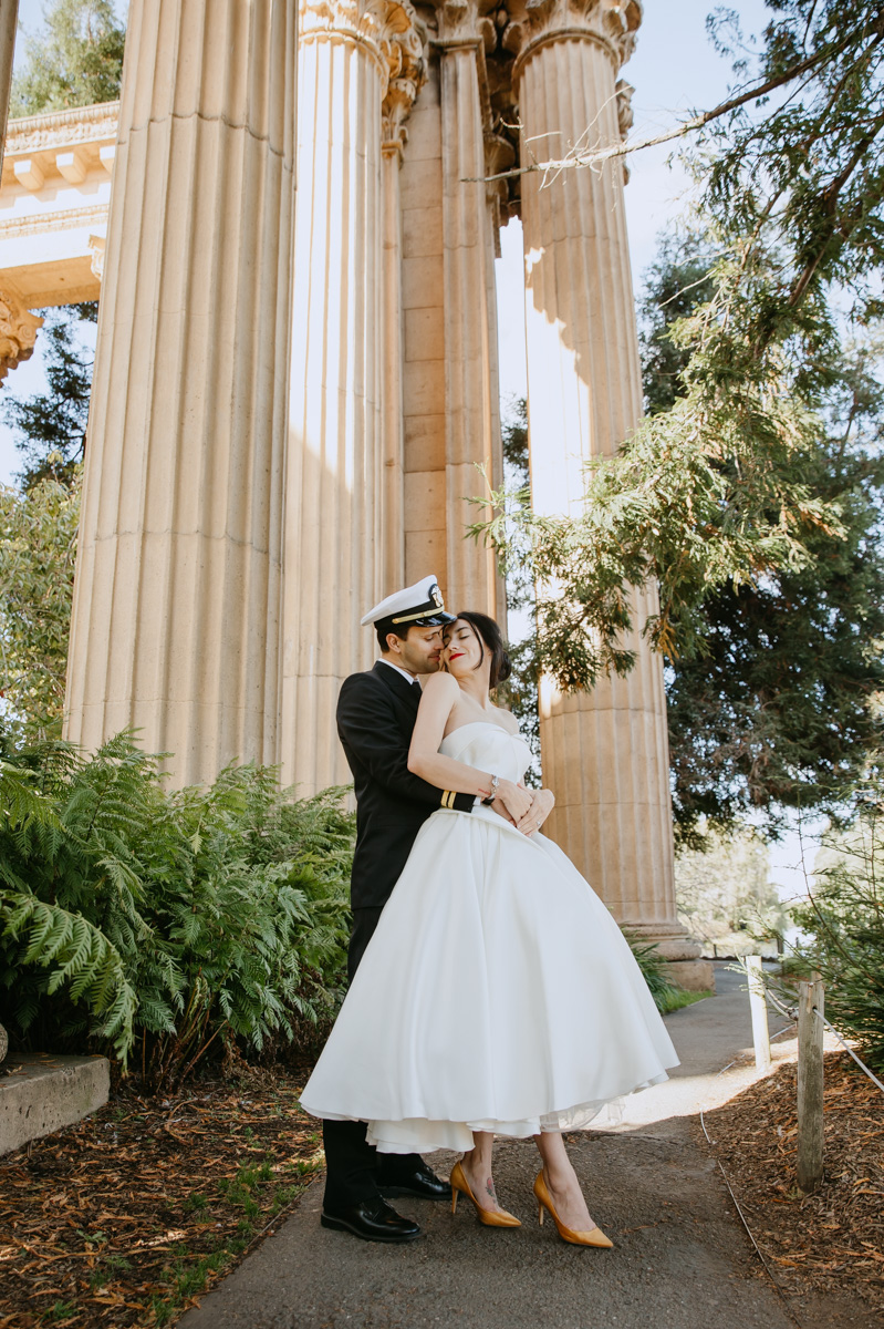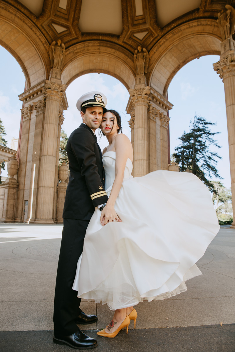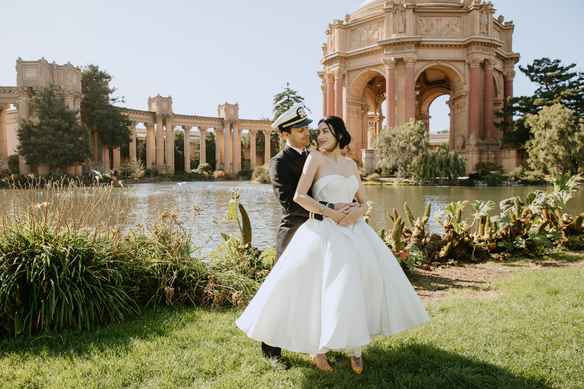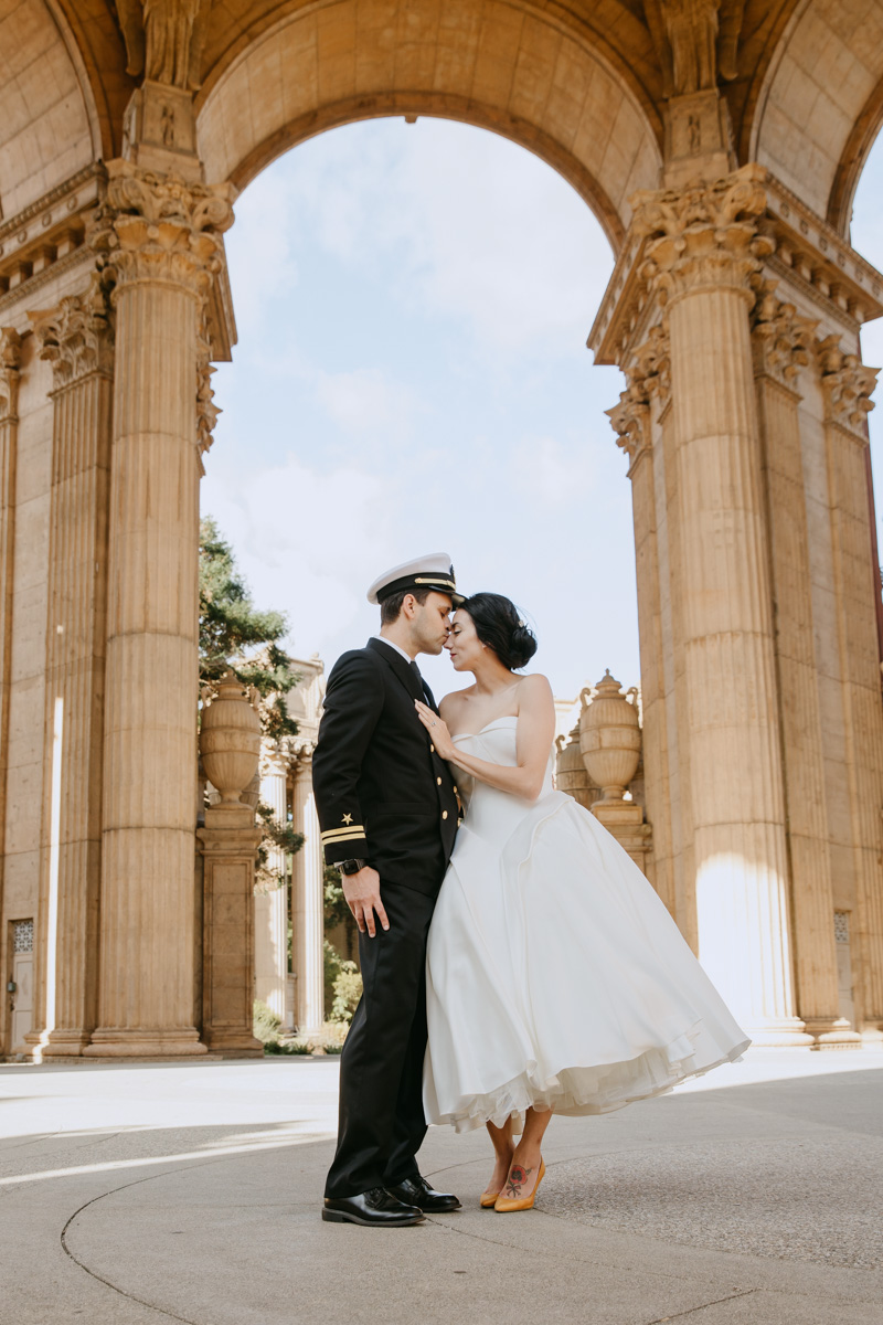 We started at the beautiful San Francisco City Hall, early in the day, so we had most of the building to ourselves. The scenery here was a perfect backdrop for this elegant and sophisticated couple. Then we walked through the Palace of Fine Arts, where they originally were married under the dome back in 2021. It was so special being able to capture all the love and romance of newlyweds, but in a relaxed setting without the stress and hustle of a wedding day. It was also special knowing they would have these images to look at whenever they have to be apart for Zalai’s military service. Thank you to these two for trusting me to immortalize your love story!