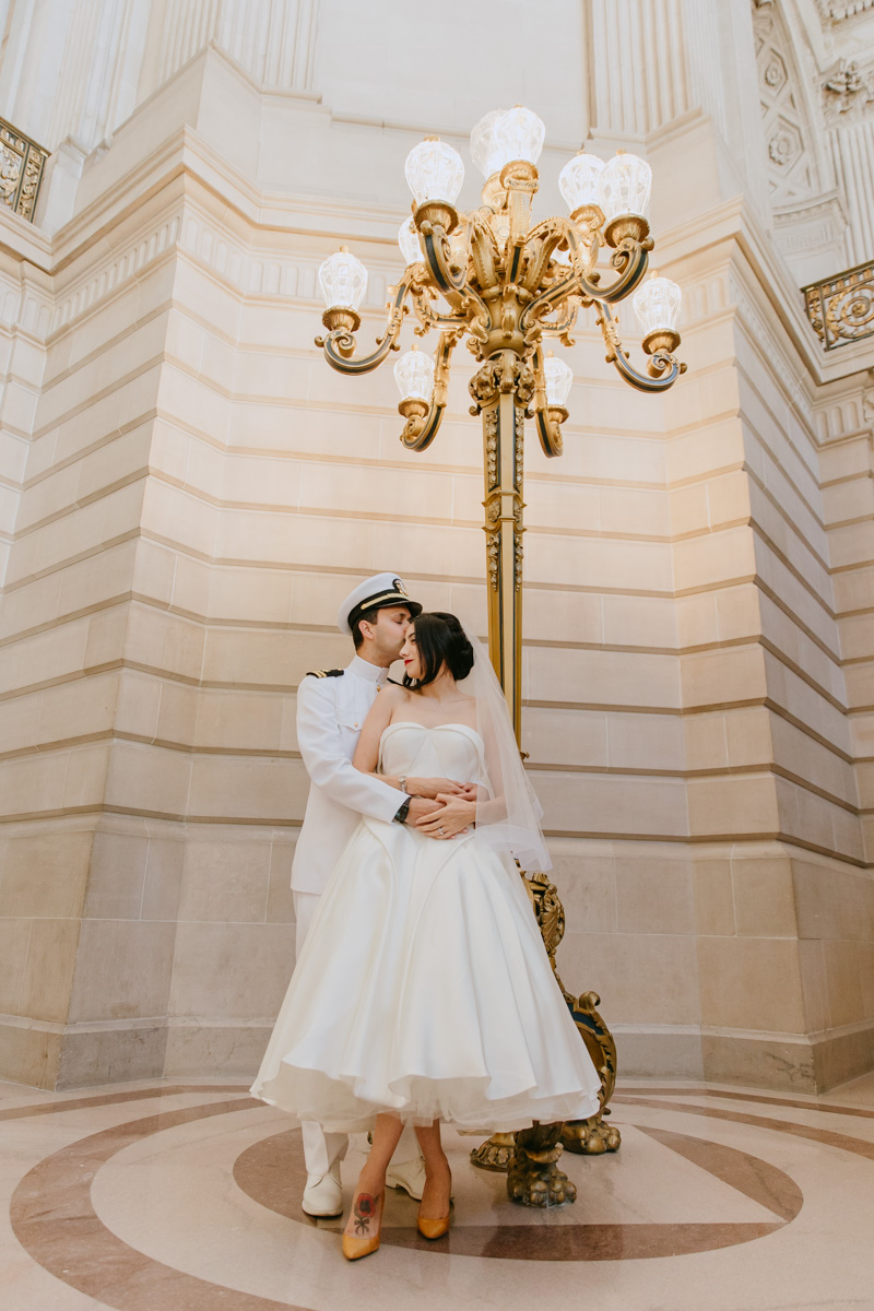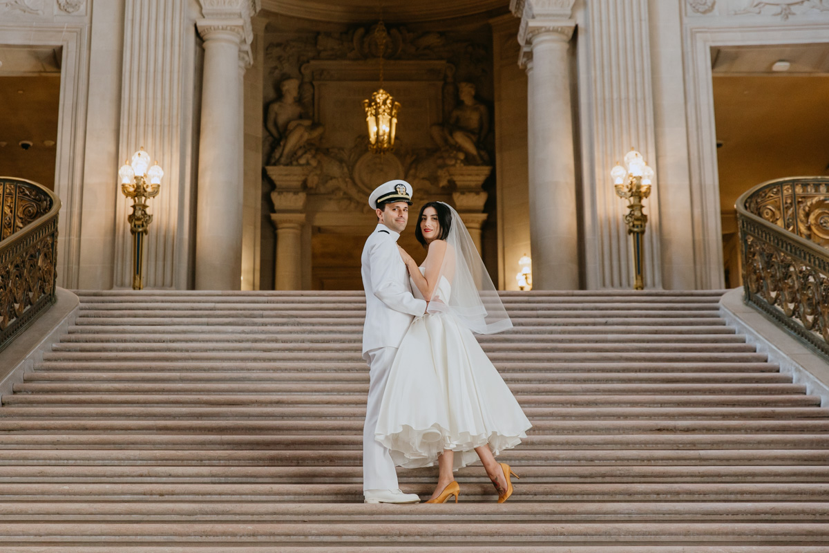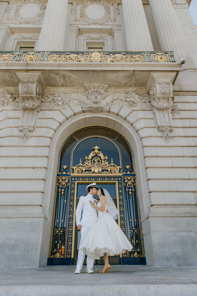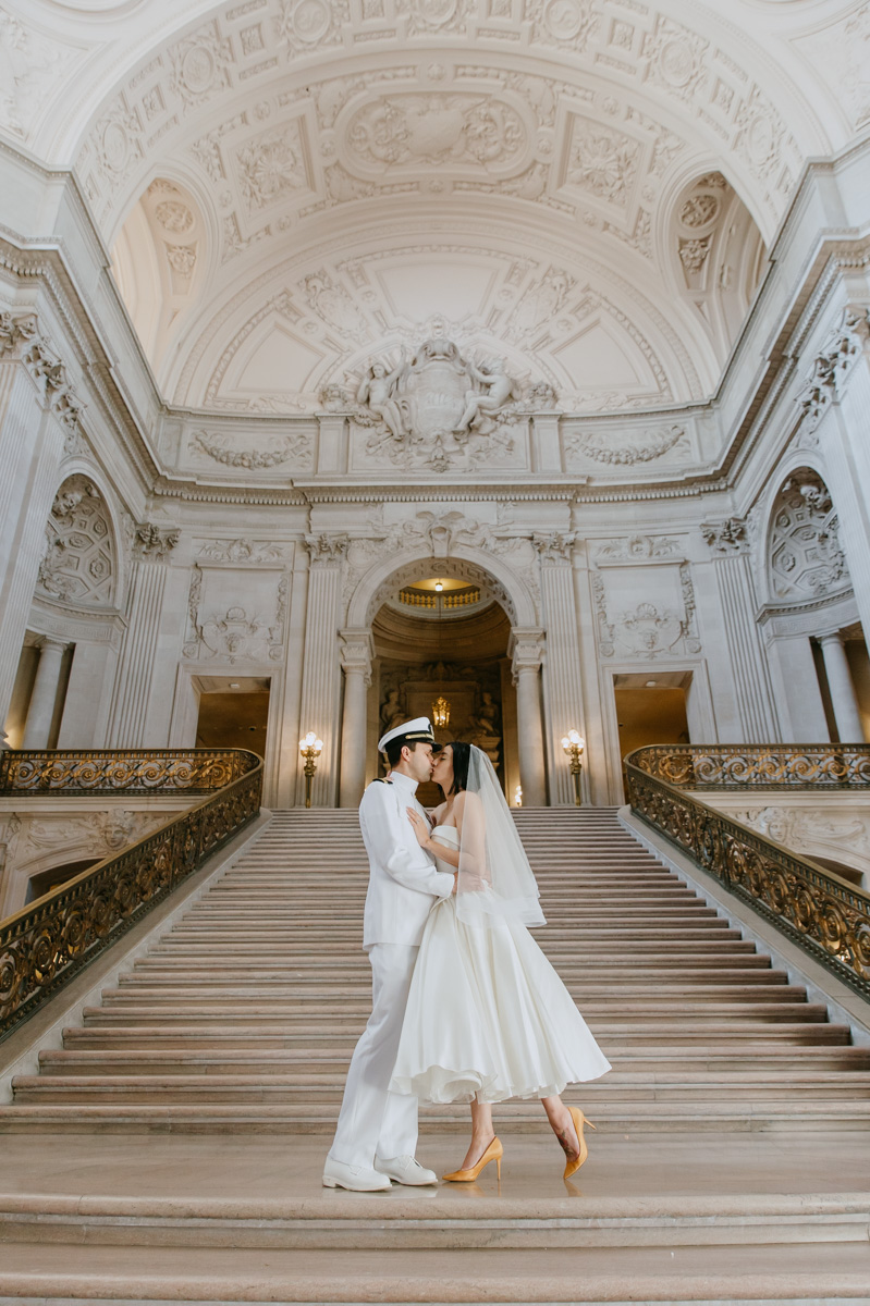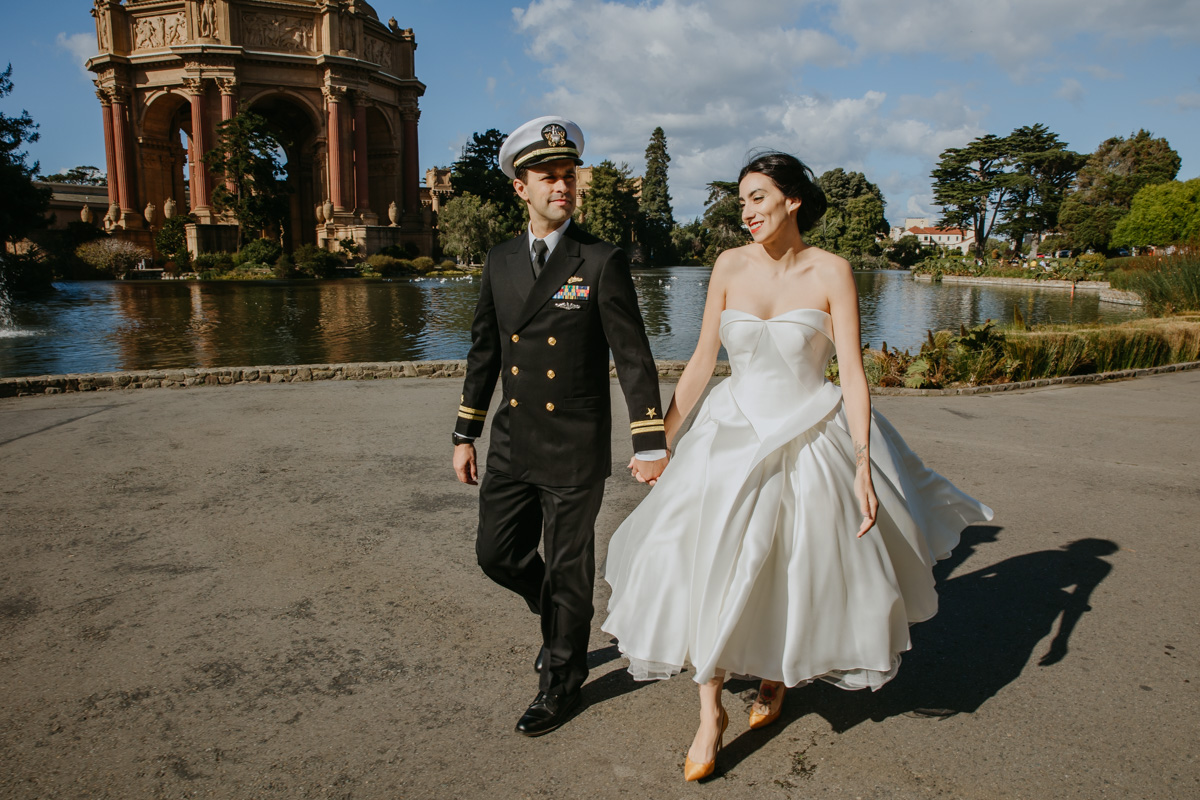 We started at the beautiful San Francisco City Hall, early in the day, so we had most of the building to ourselves. The scenery here was a perfect backdrop for this elegant and sophisticated couple. Then we walked through the Palace of Fine Arts, where they originally were married under the dome back in 2021. It was so special being able to capture all the love and romance of newlyweds, but in a relaxed setting without the stress and hustle of a wedding day. It was also special knowing they would have these images to look at whenever they have to be apart for Zalai’s military service. Thank you to these two for trusting me to immortalize your love story!