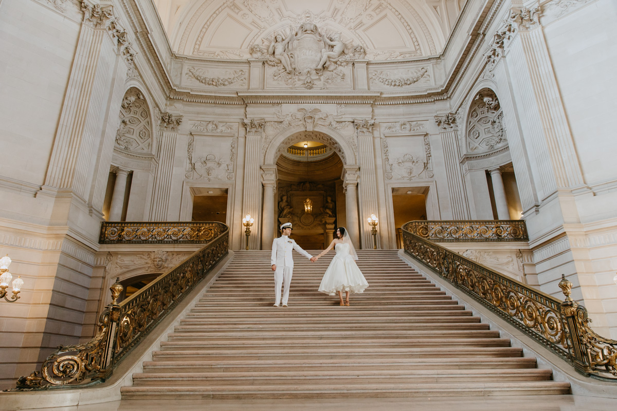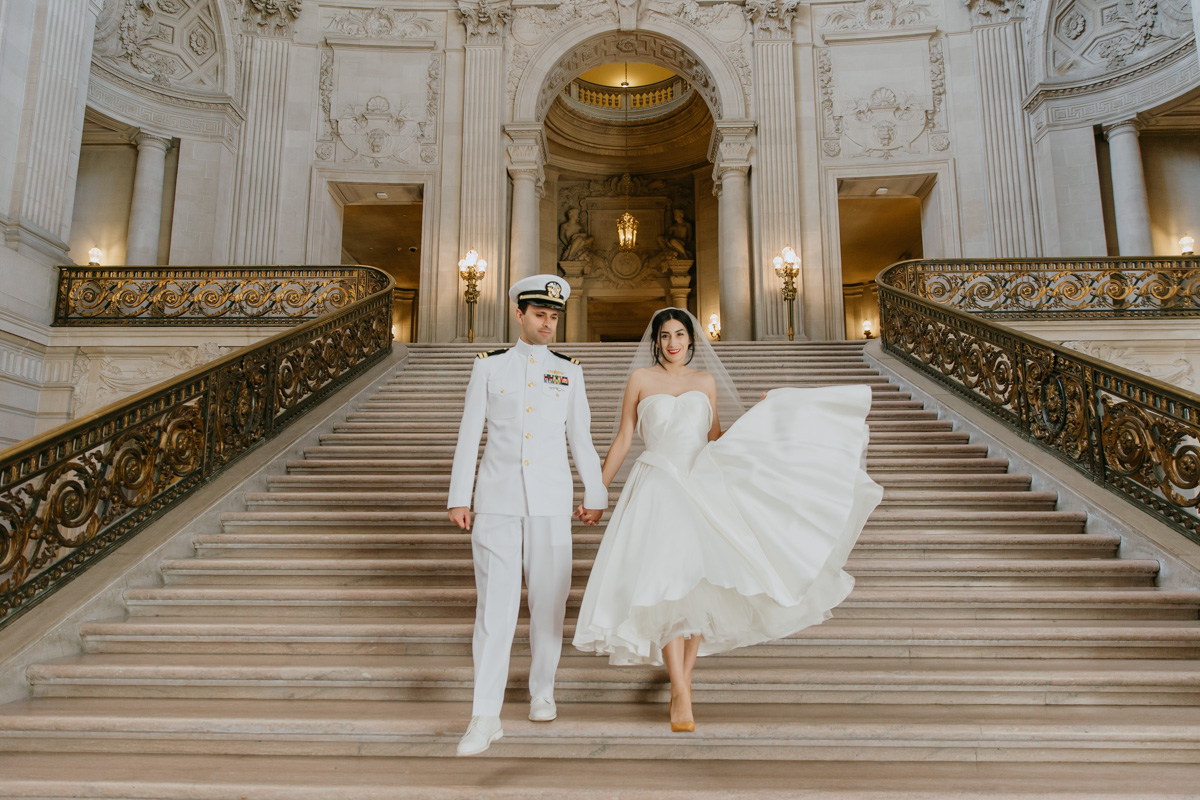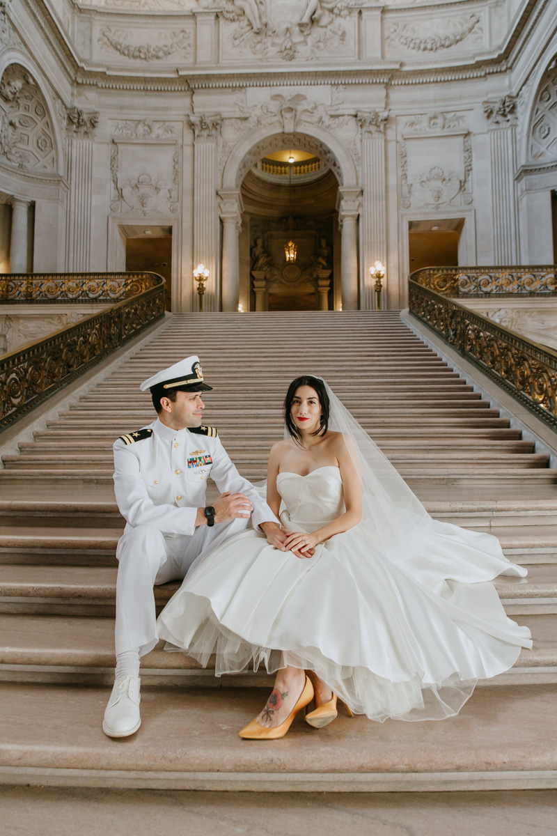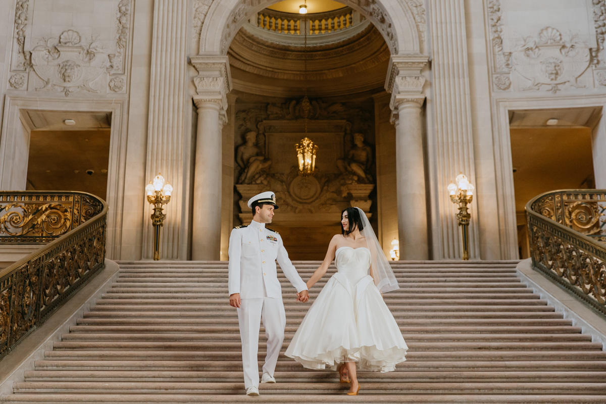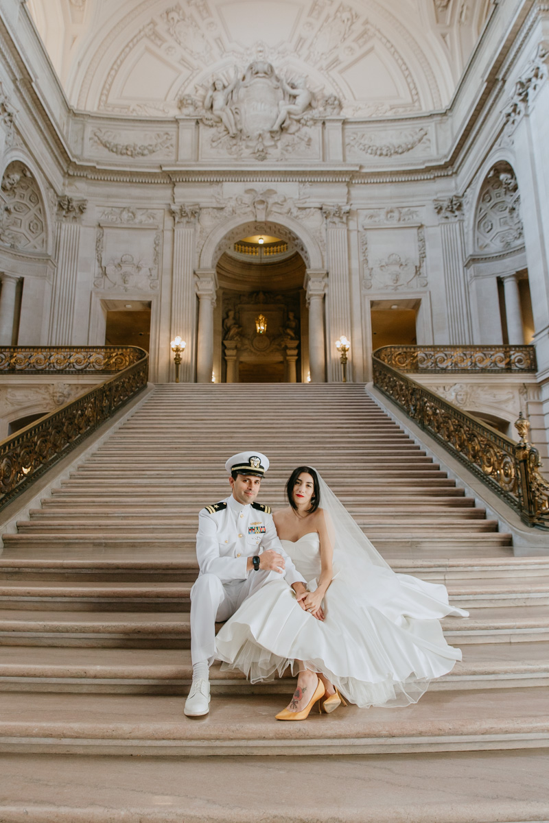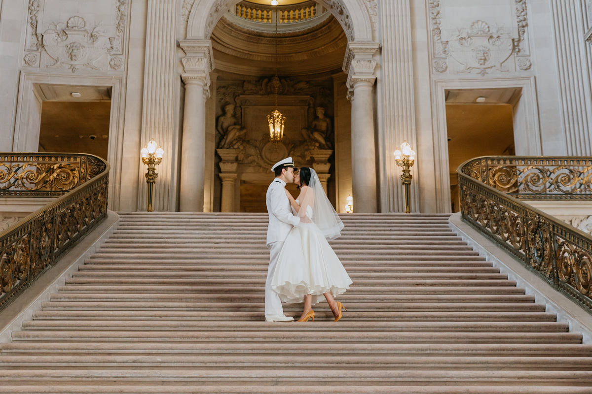 We started at the beautiful San Francisco City Hall, early in the day, so we had most of the building to ourselves. The scenery here was a perfect backdrop for this elegant and sophisticated couple. Then we walked through the Palace of Fine Arts, where they originally were married under the dome back in 2021. It was so special being able to capture all the love and romance of newlyweds, but in a relaxed setting without the stress and hustle of a wedding day. It was also special knowing they would have these images to look at whenever they have to be apart for Zalai’s military service. Thank you to these two for trusting me to immortalize your love story!