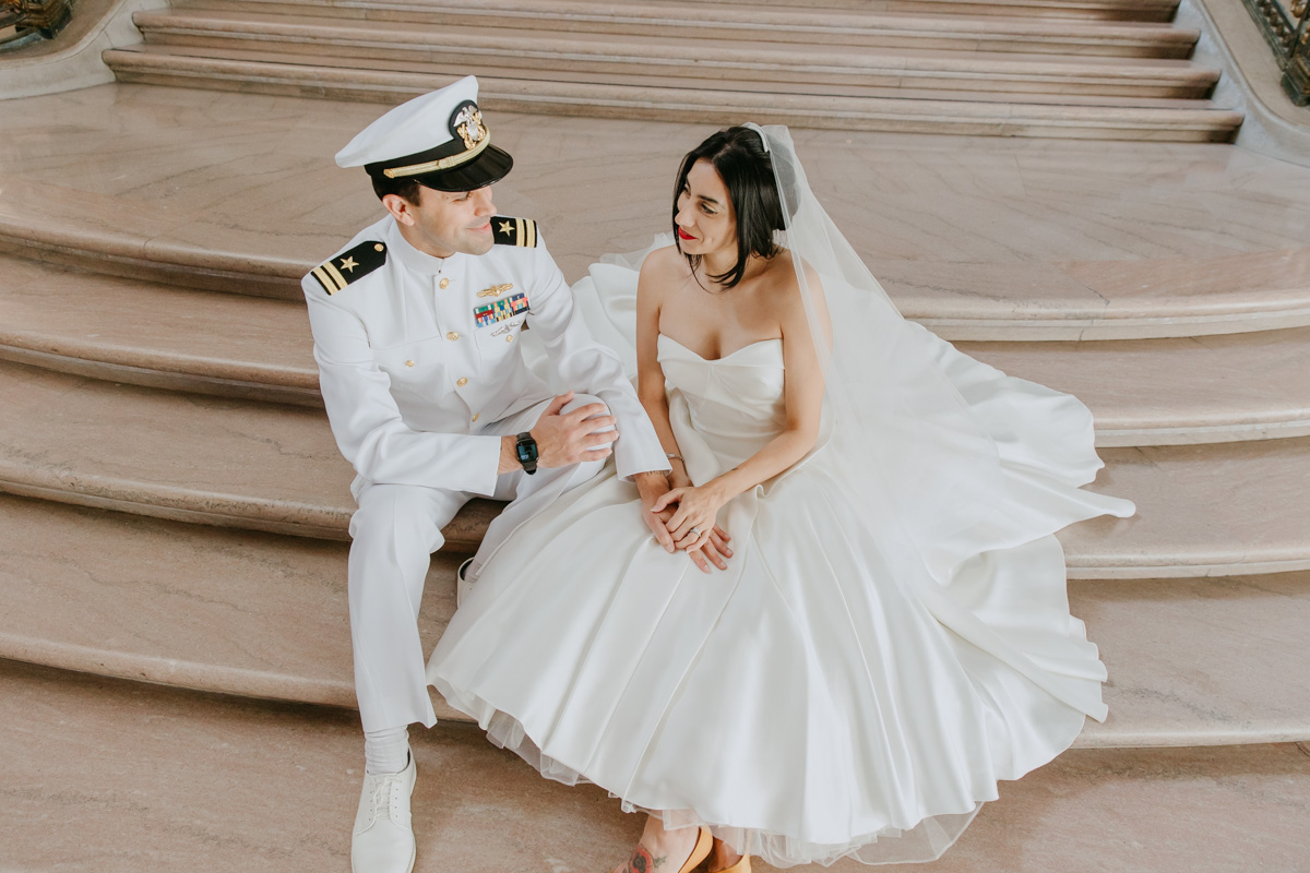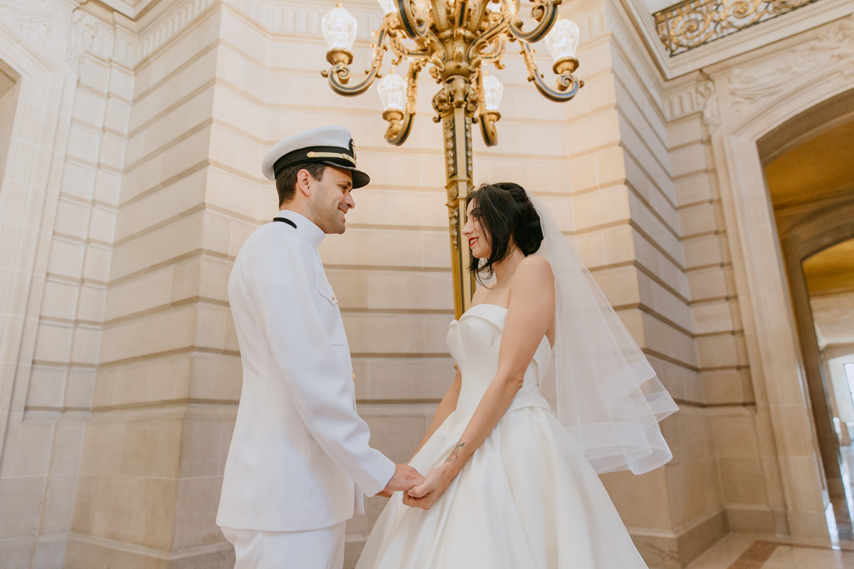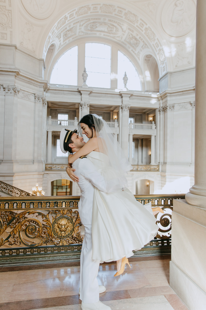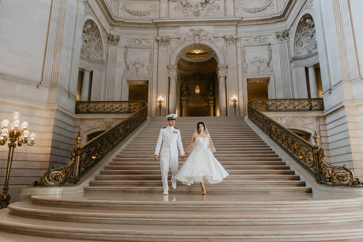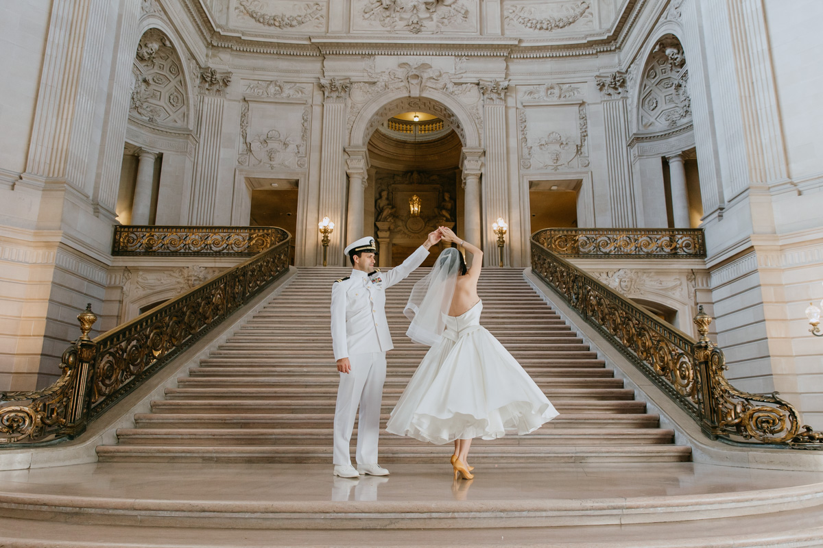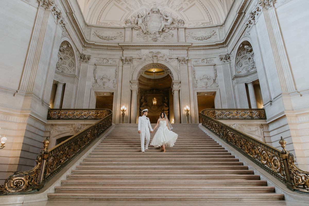 We started at the beautiful San Francisco City Hall, early in the day, so we had most of the building to ourselves. The scenery here was a perfect backdrop for this elegant and sophisticated couple. Then we walked through the Palace of Fine Arts, where they originally were married under the dome back in 2021. It was so special being able to capture all the love and romance of newlyweds, but in a relaxed setting without the stress and hustle of a wedding day. It was also special knowing they would have these images to look at whenever they have to be apart for Zalai’s military service. Thank you to these two for trusting me to immortalize your love story!