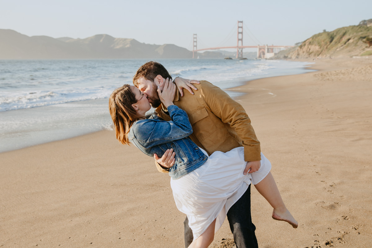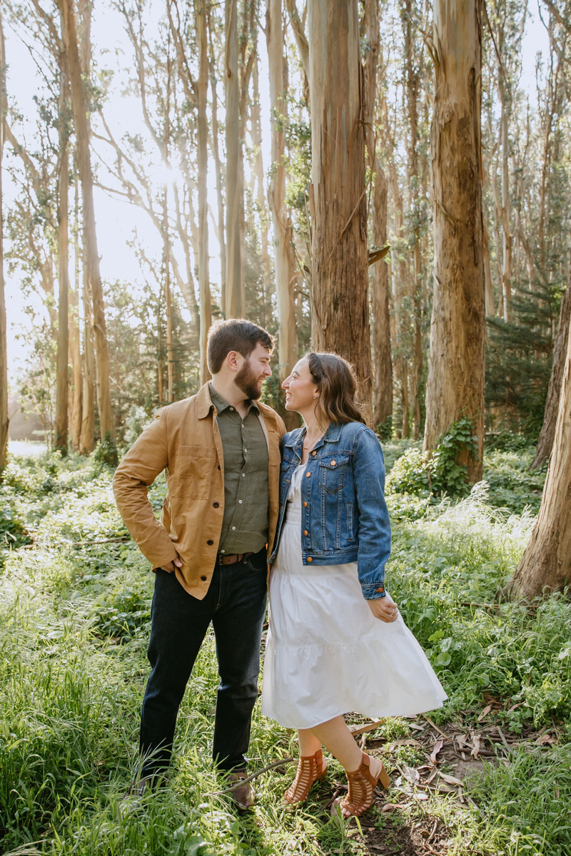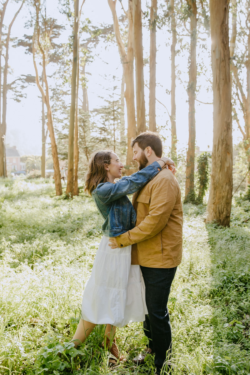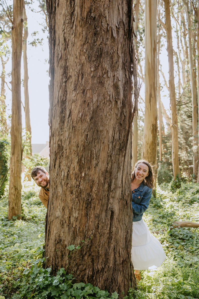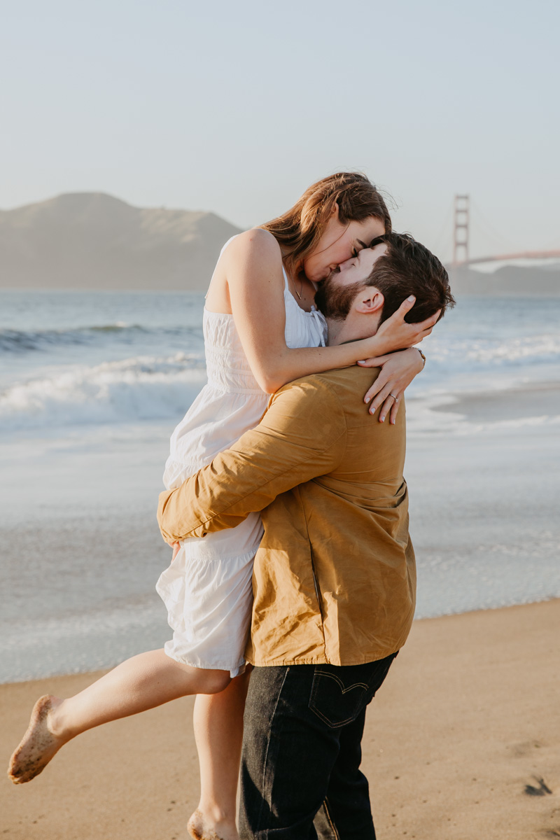 For Rosie and Matt’s engagement photo session, they wanted the best of two worlds: the moody, woody vibes of Lovers Lane, and the sunny coastal view of the Golden Gate bridge at Baker Beach. The sun coming through the trees at Lovers Lane gave us such beautiful lighting illuminating this glowing couple, and the sun at the beach gave us bright blue skies and water. Having a bright sunny day was such a treasure for a city that is nearly always a little gloomy and overcast, and it was a joy being able to spend this day capturing romantic memories for these two! They are getting married in New York next year, and I am so honored to be asked to be there to photograph them again!
