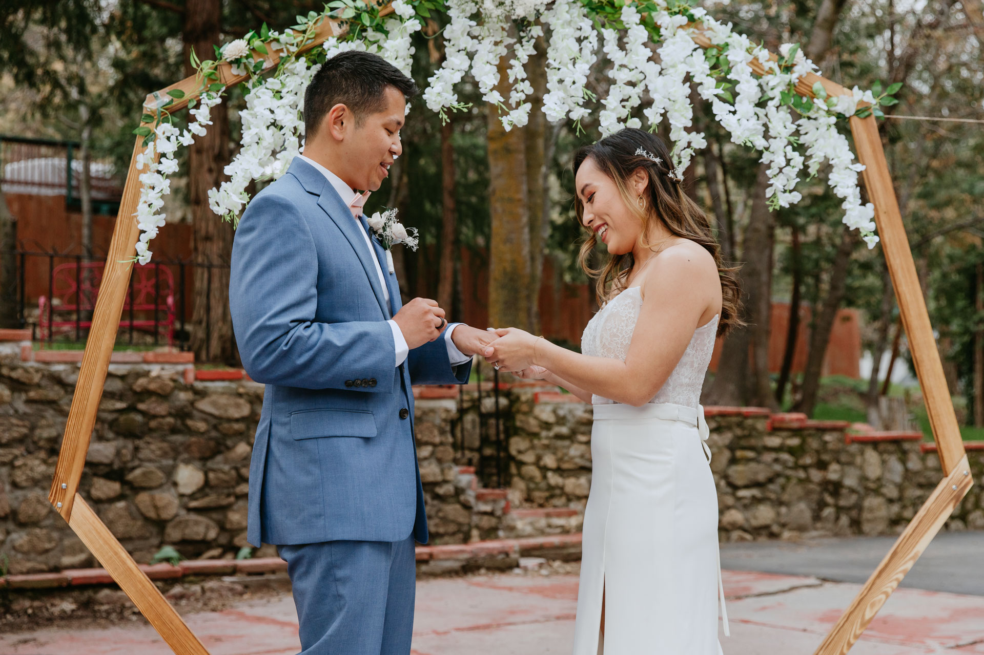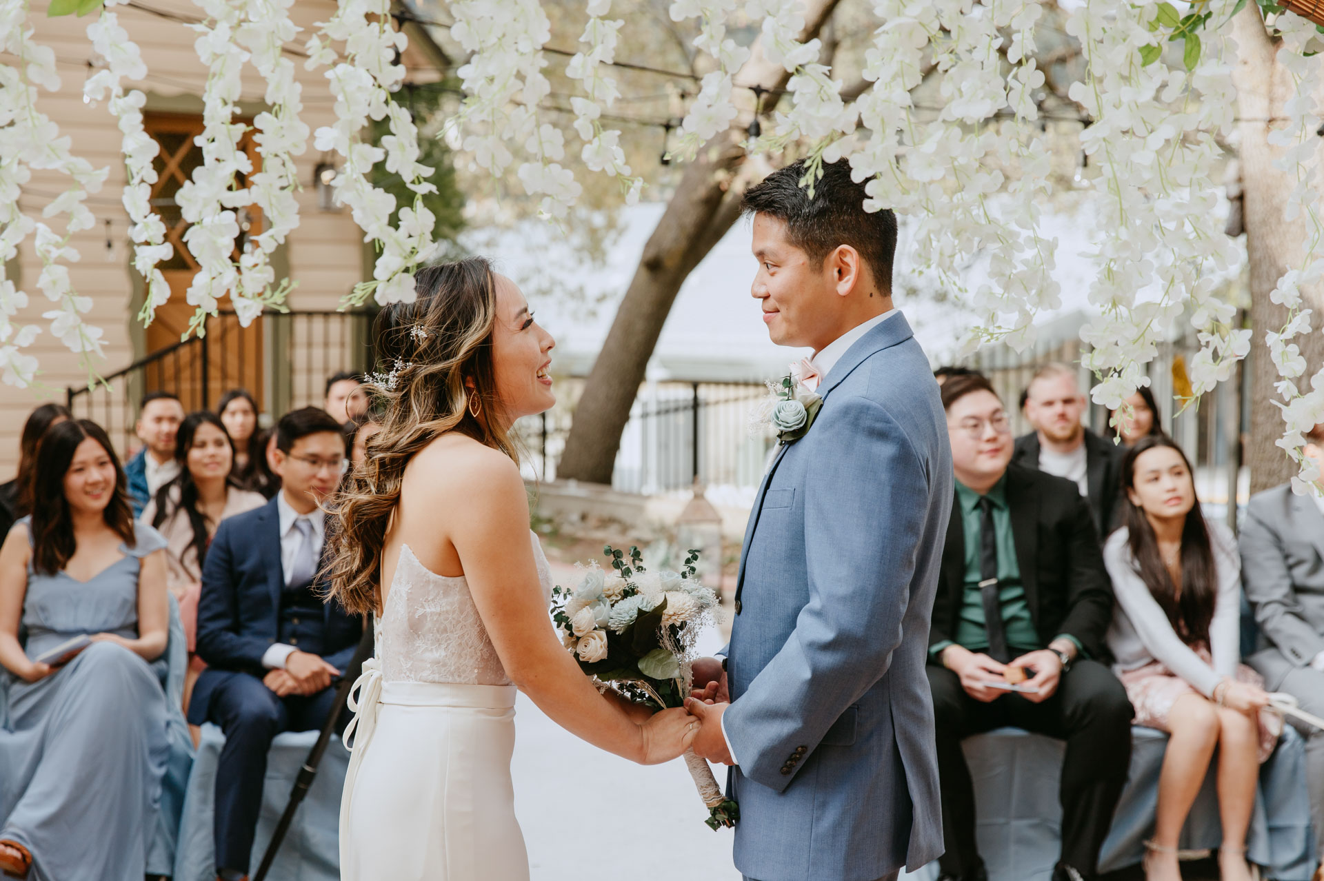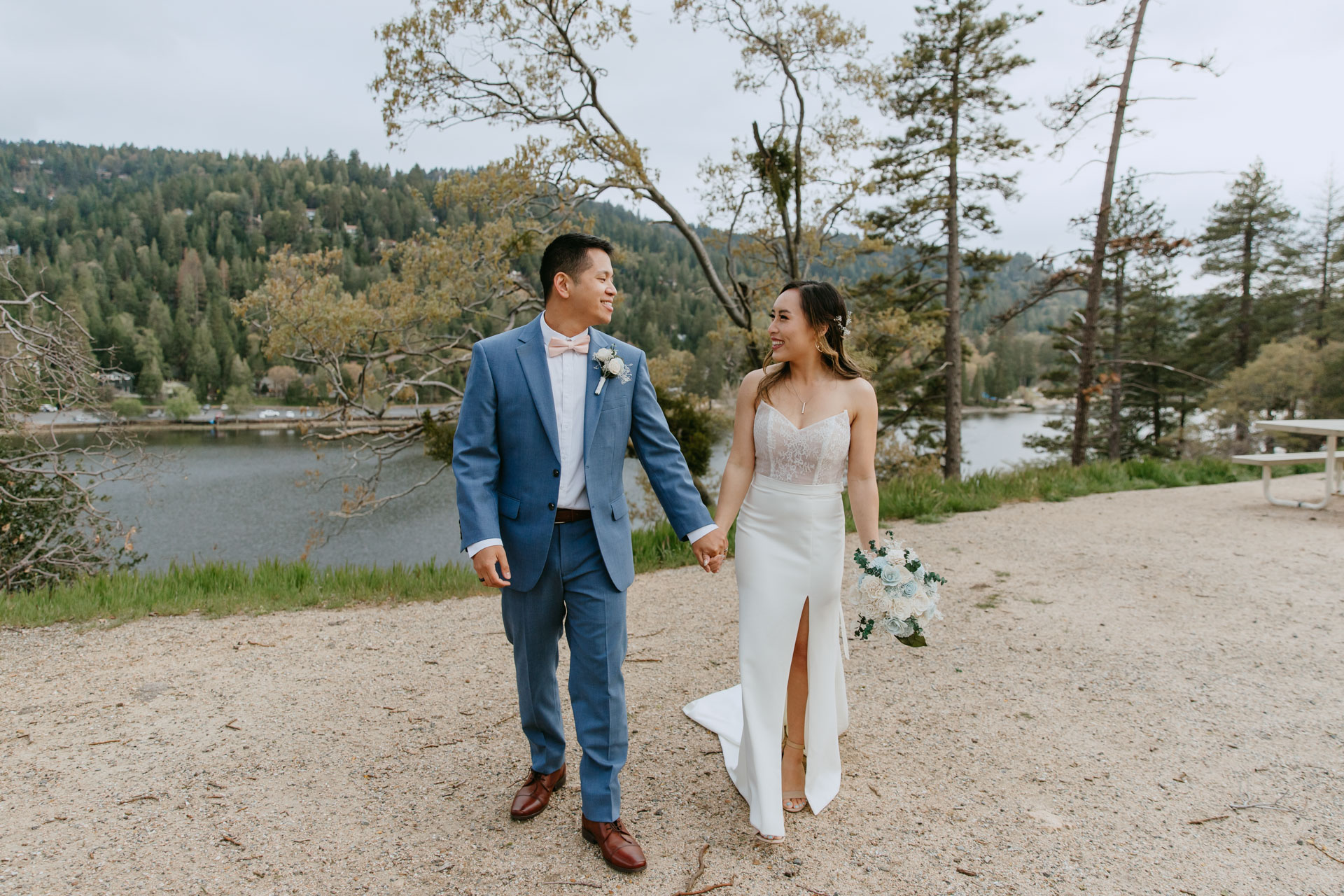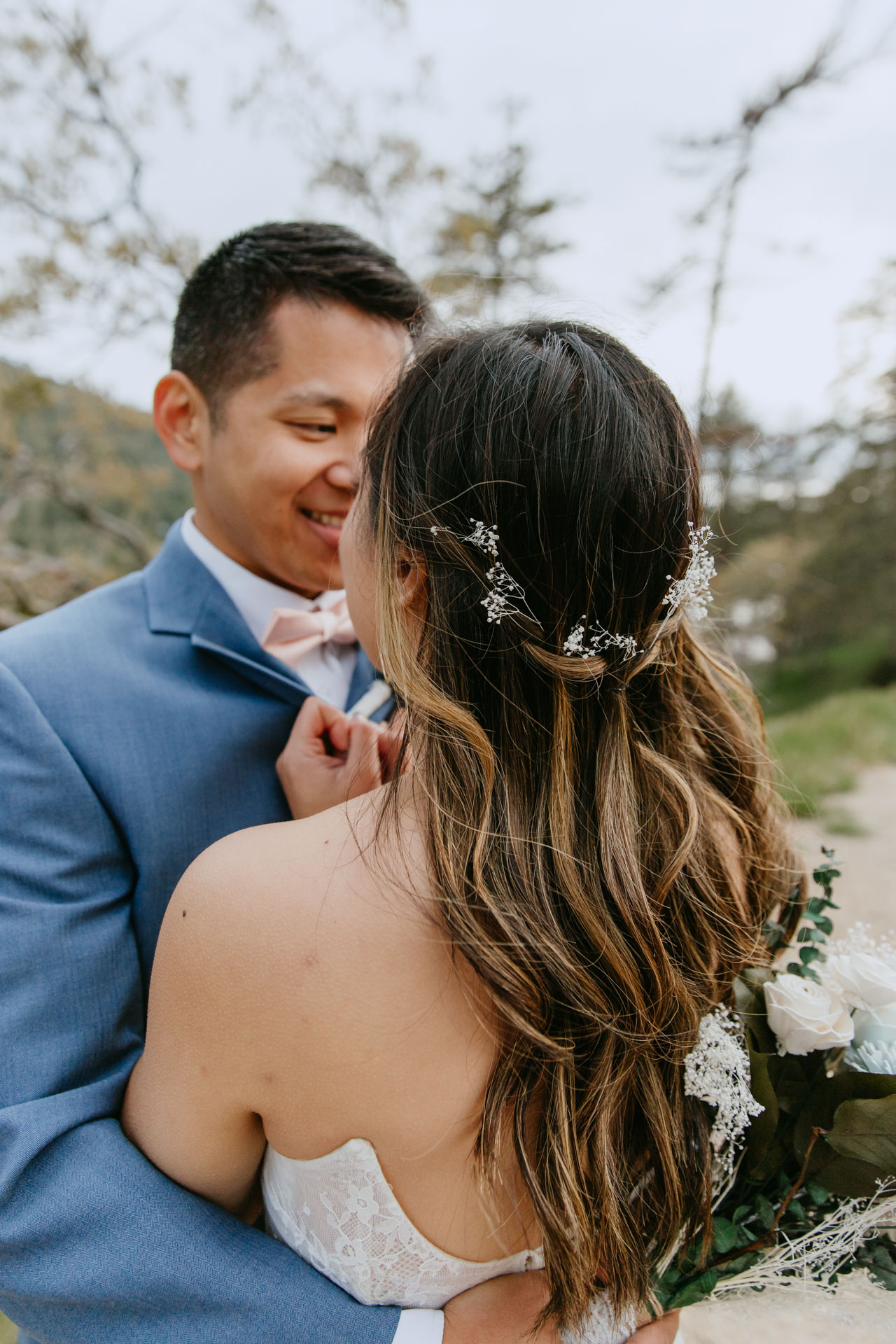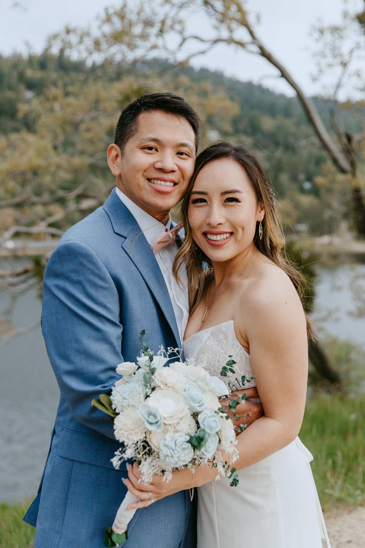 For Rosie and Mattโs engagement photo session, they wanted the best of two worlds: the moody, woody vibes of Lovers Lane, and the sunny coastal view of the Golden Gate bridge at Baker Beach. The sun coming through the trees at Lovers Lane gave us such beautiful lighting illuminating this glowing couple, and the sun at the beach gave us bright blue skies and water.
